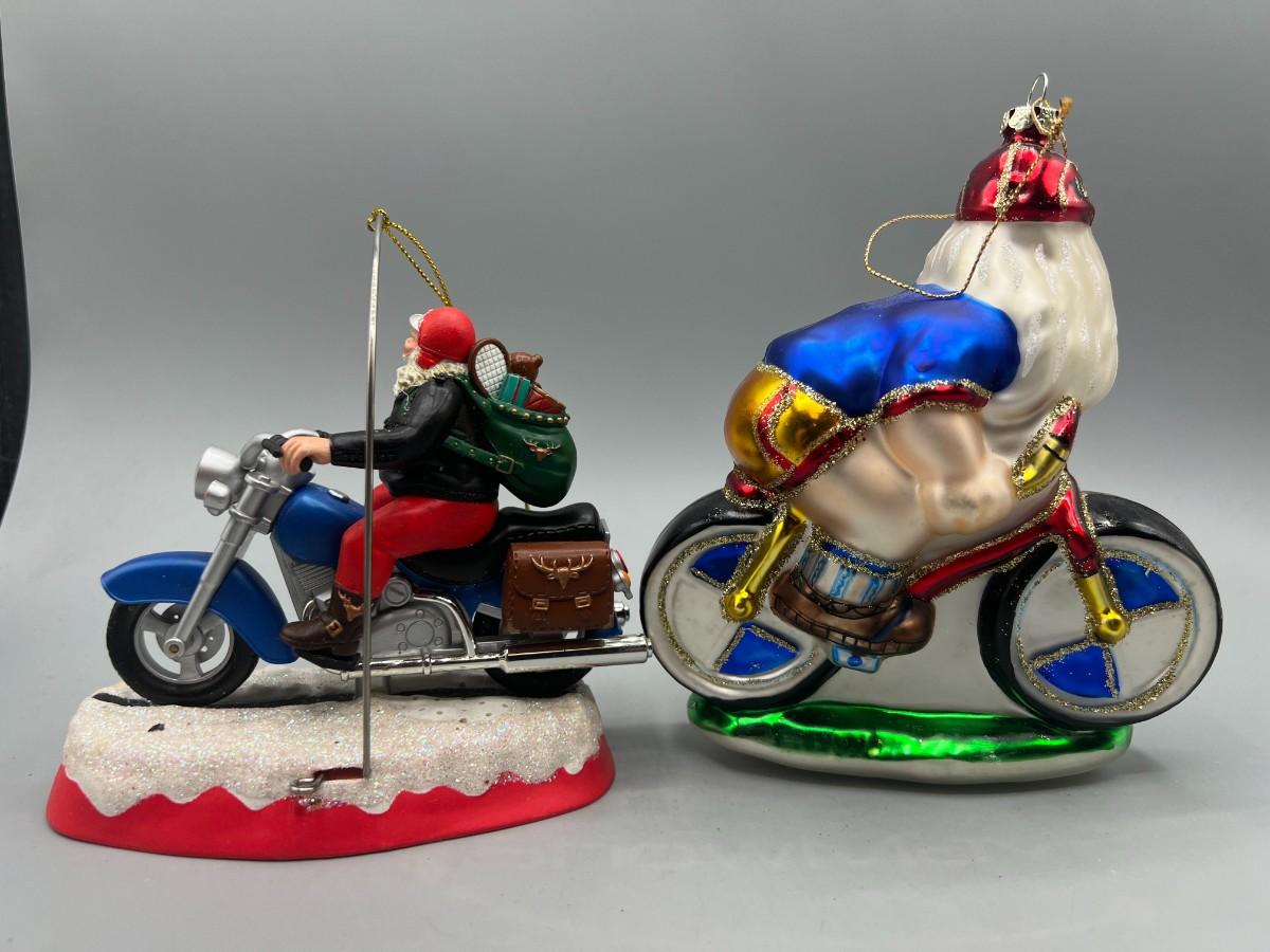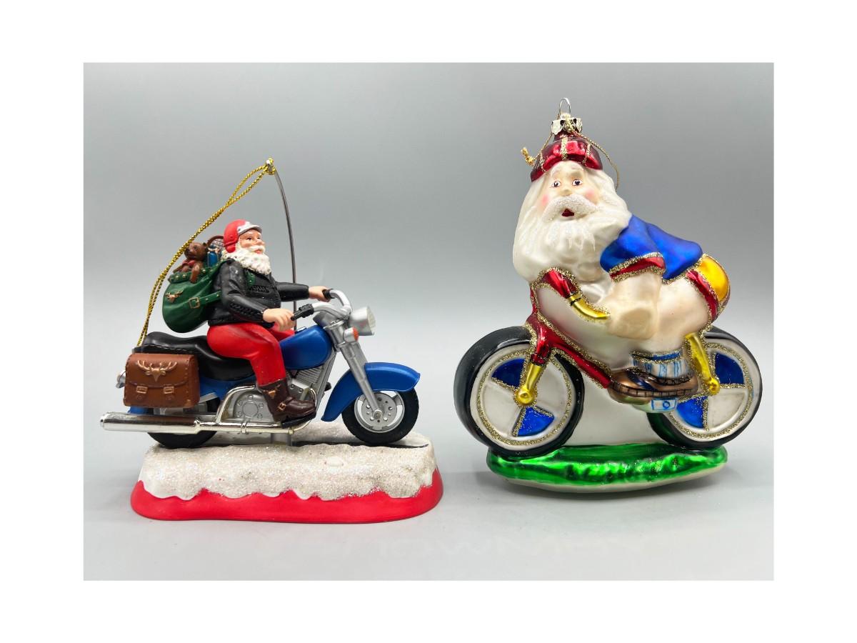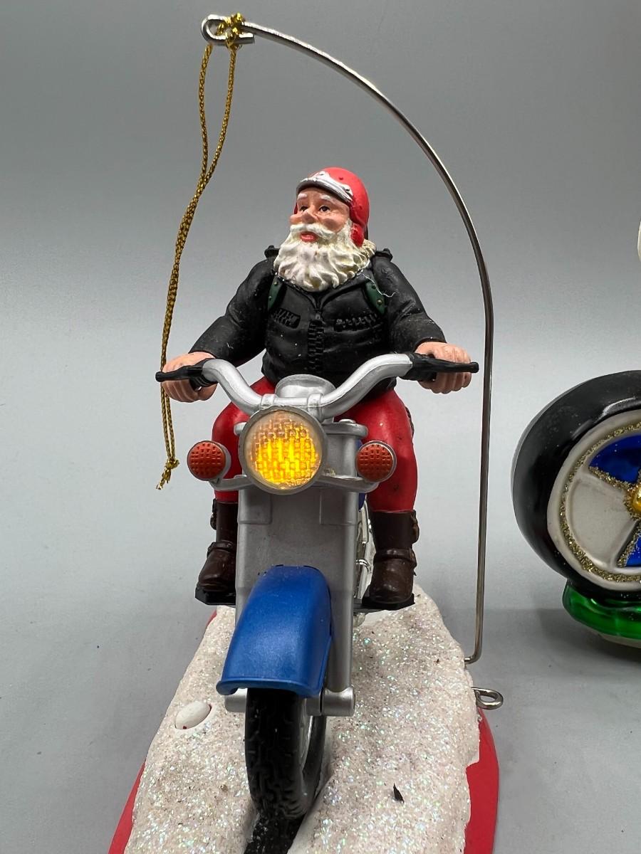 Santa Claus Riding Bicycle & Motorcycle Musical Song Ornaments