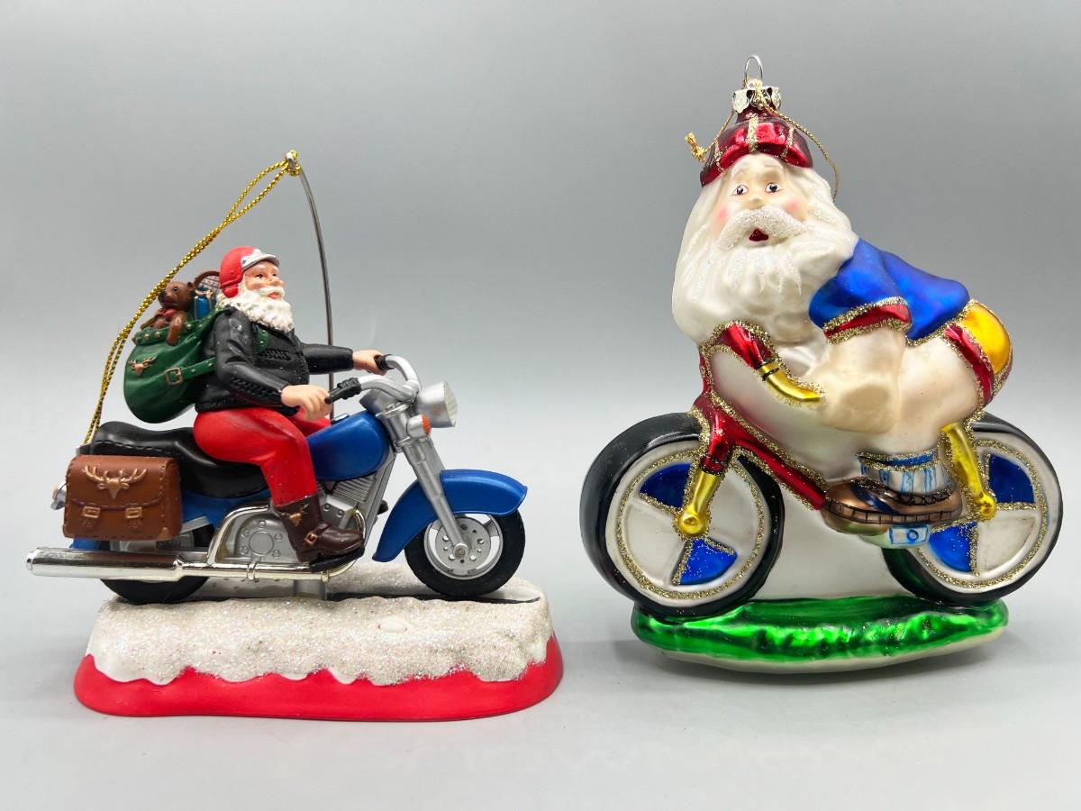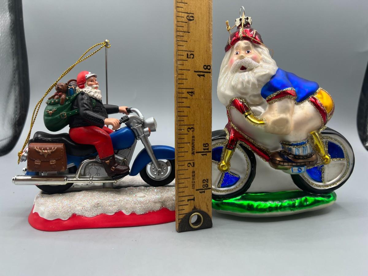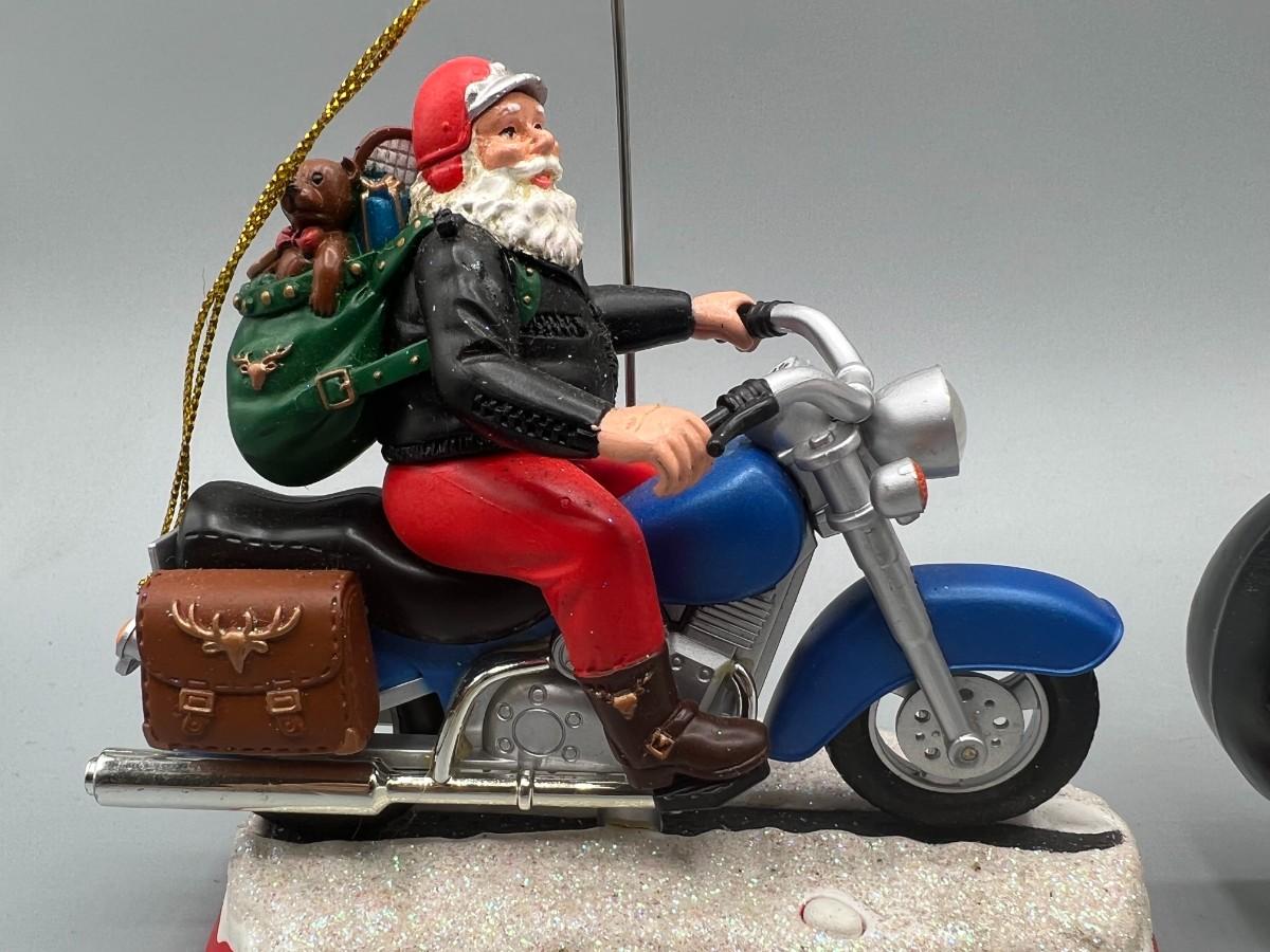 Santa Claus Riding Bicycle & Motorcycle Musical Song Ornaments