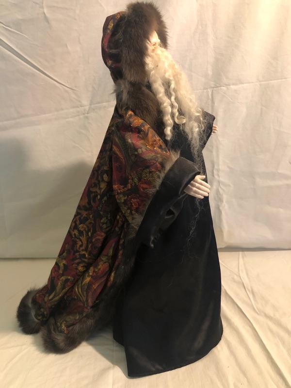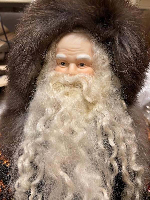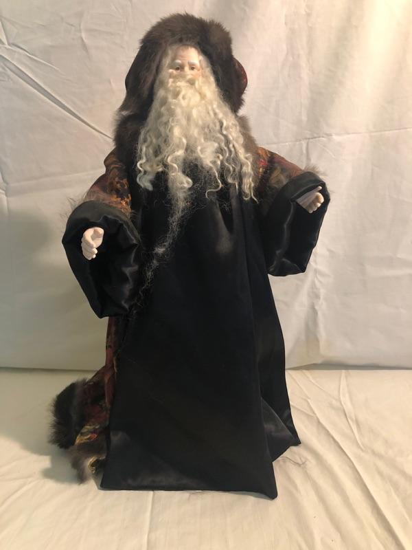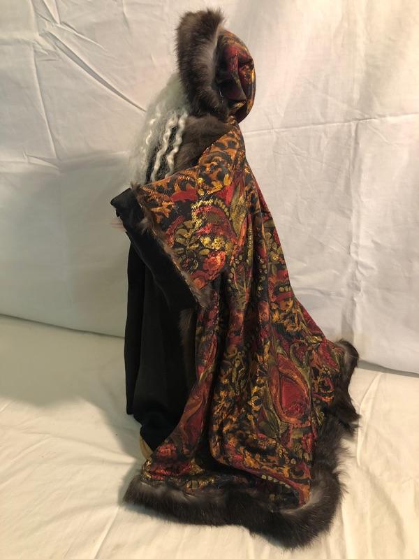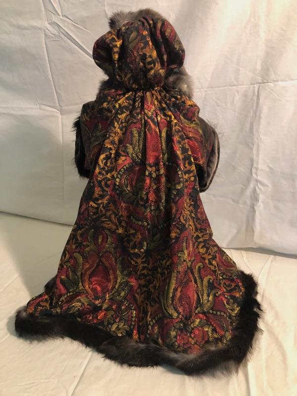 Silk Fur Cloaked Santa 22 inches tall with wooden oval base 10 inches wide x 6  Hand Made