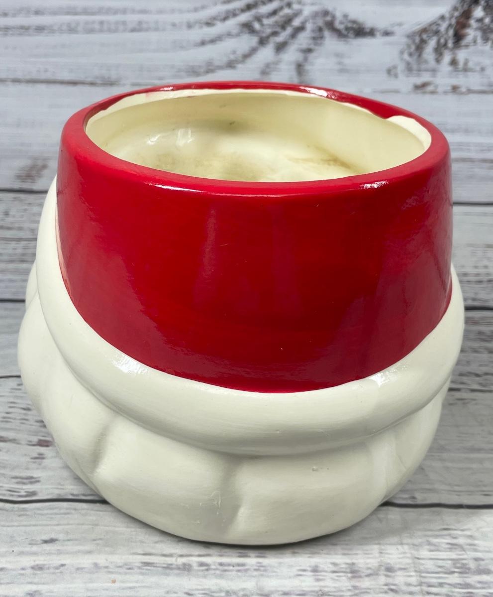 The bowl is in a used condition. The inside has stains due to years of usage and some small crazing. The bowl is approximately 5” tall.