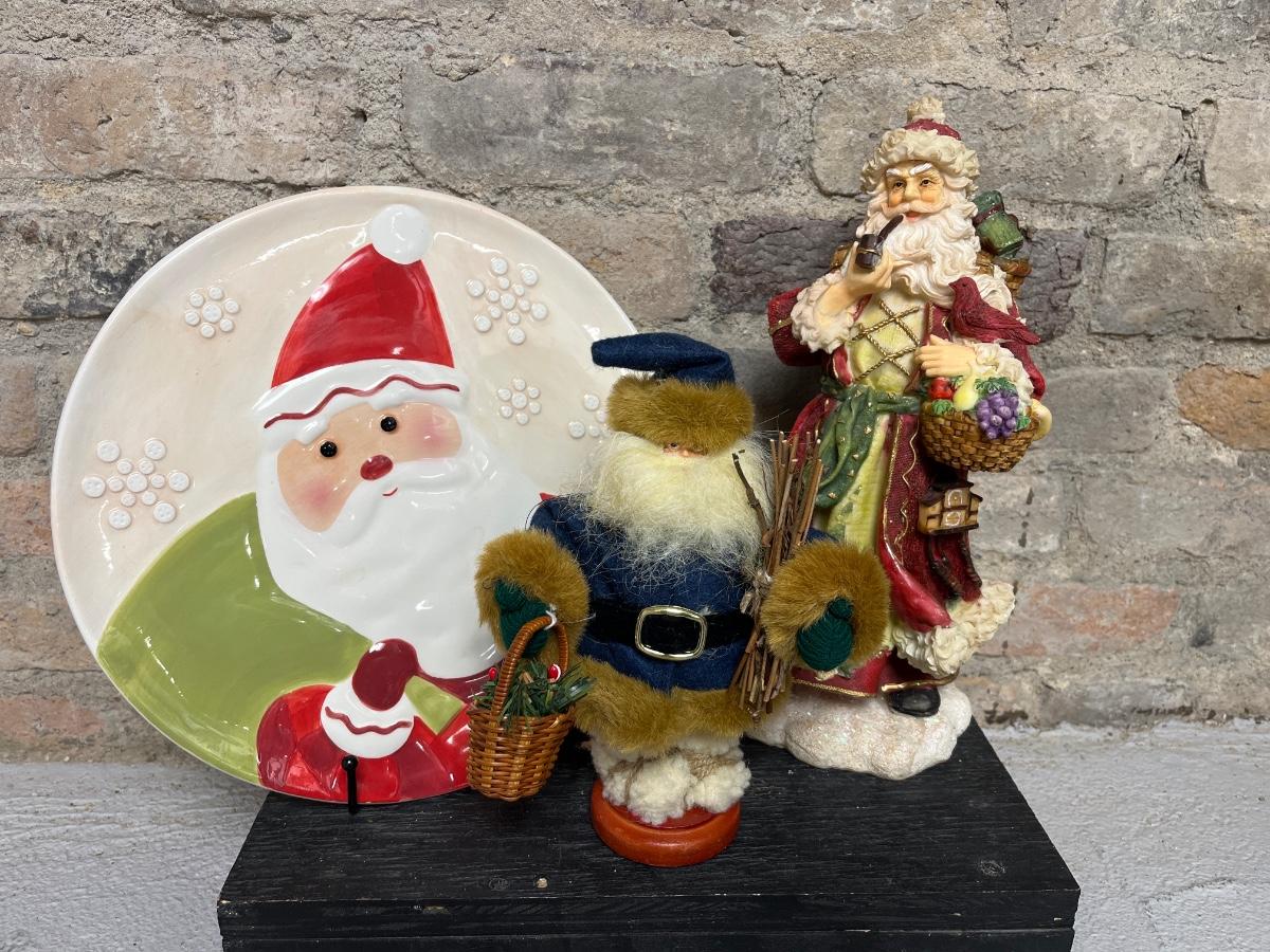 Santa plate, resin Santa figurine and gatherer Santa from Utah