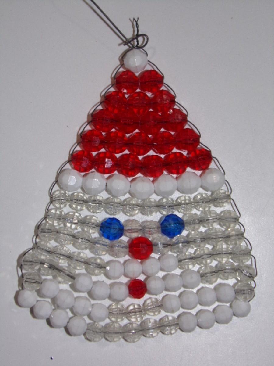 Hand crafted wired bead Santa face caricature tree ornament