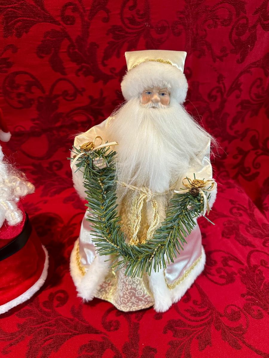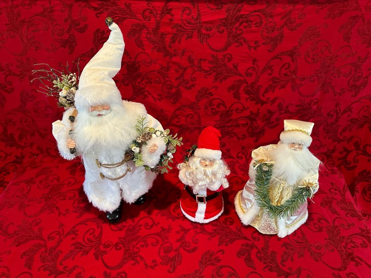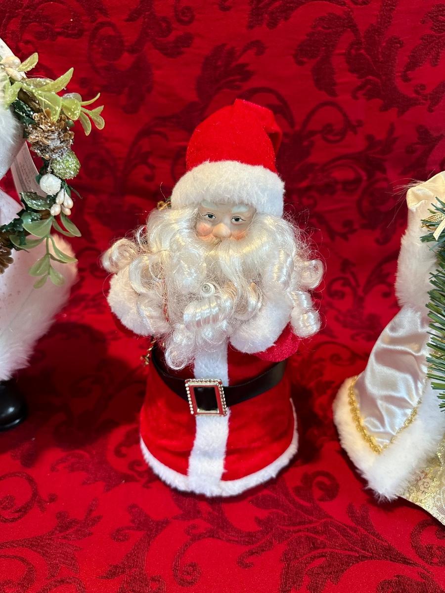 SANTA FIGURINE AND 2 SANTA TREE TOPPERS