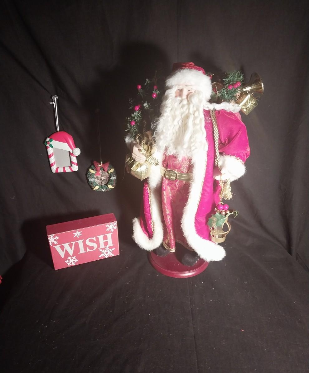 SANTA FIGURINE- WOODEN WISH SIGN AND PHOTO FRAME ORNAMENTS