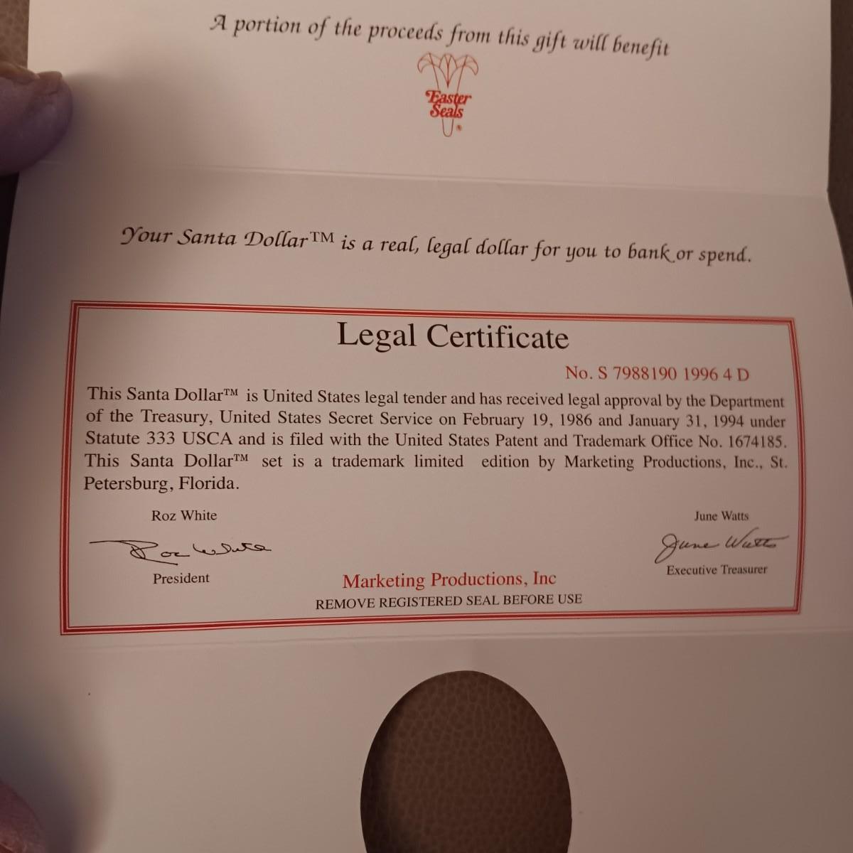 SANTA GENUINE DOLLAR BILL