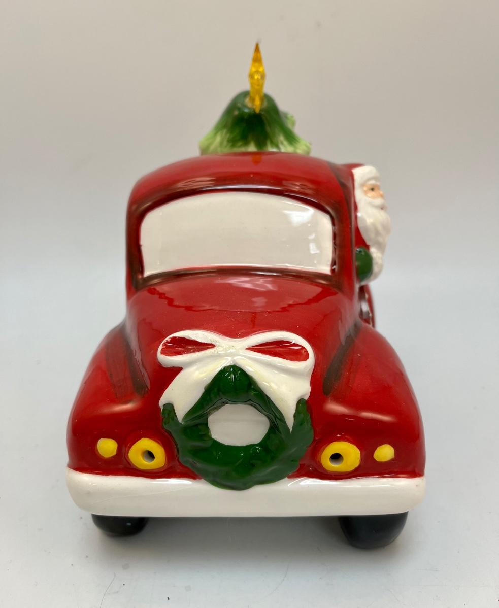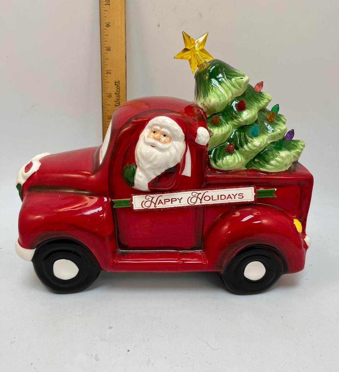 Santa in Red Pickup Truck with Light Up Christmas Tree Figurine. Untested. Good condition.