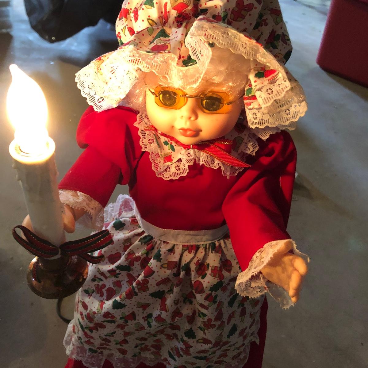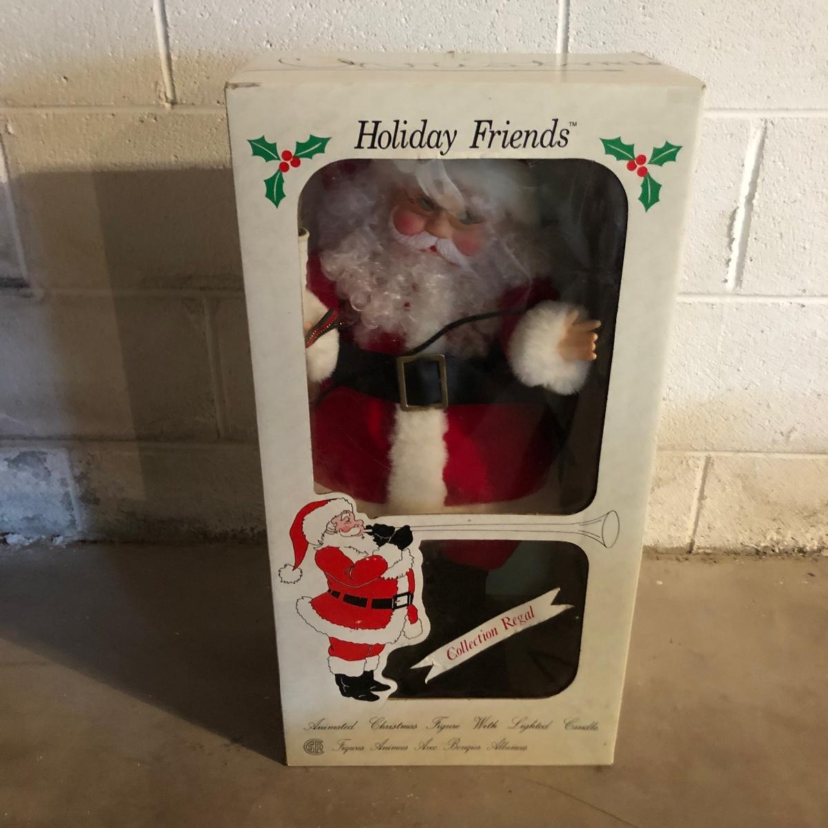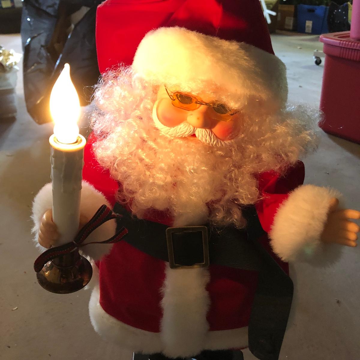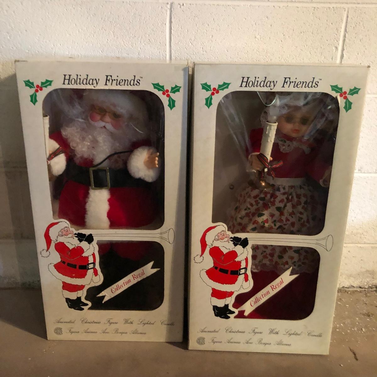 Lot includes an electric animated Santa Claus figure and a Mrs. Claus figure that both have lighted candles. Both figures worked when tested. Figures measure 24” tall.