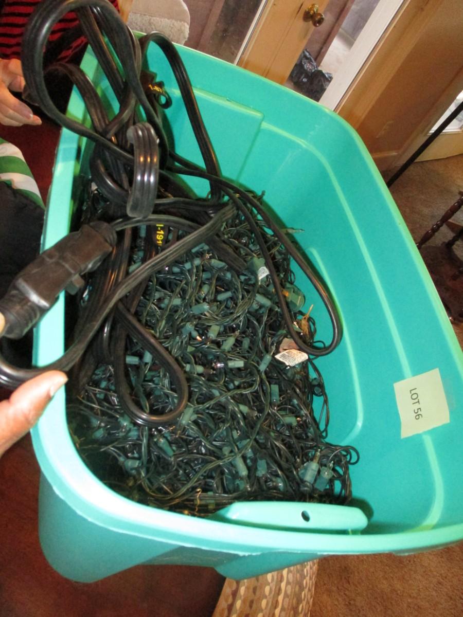 Plush Santa and Mrs clause. Tub of Christmas Lights and Extension cord. Great condition