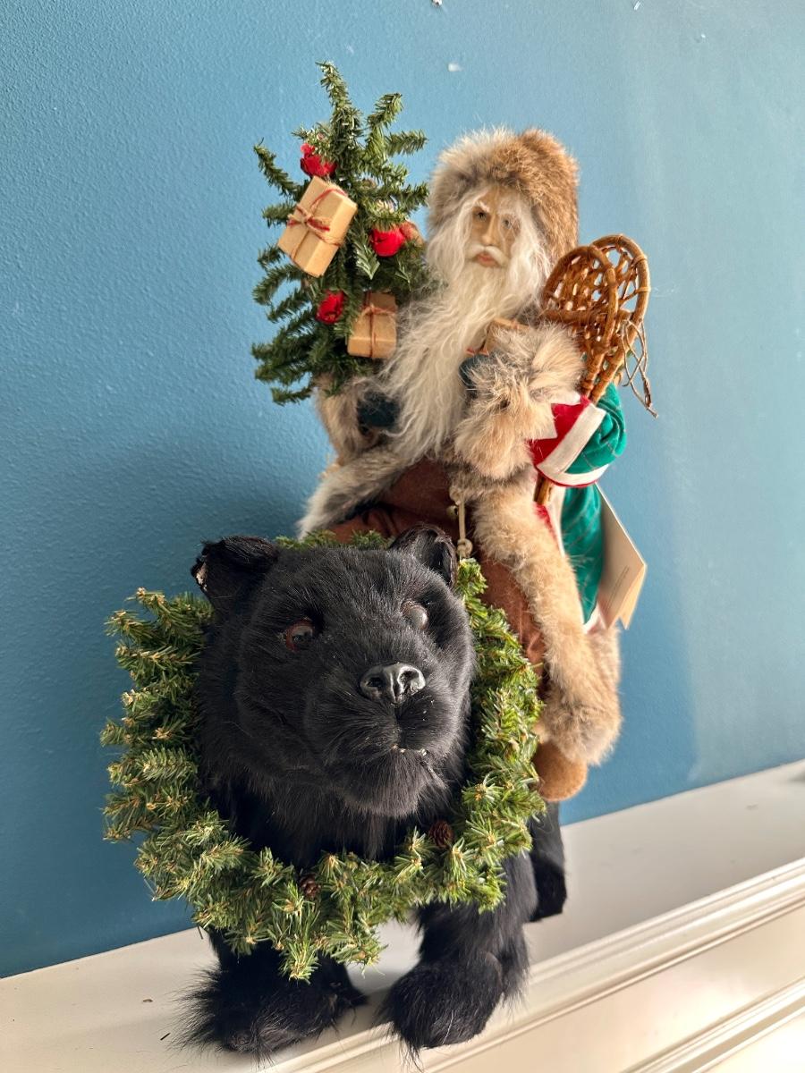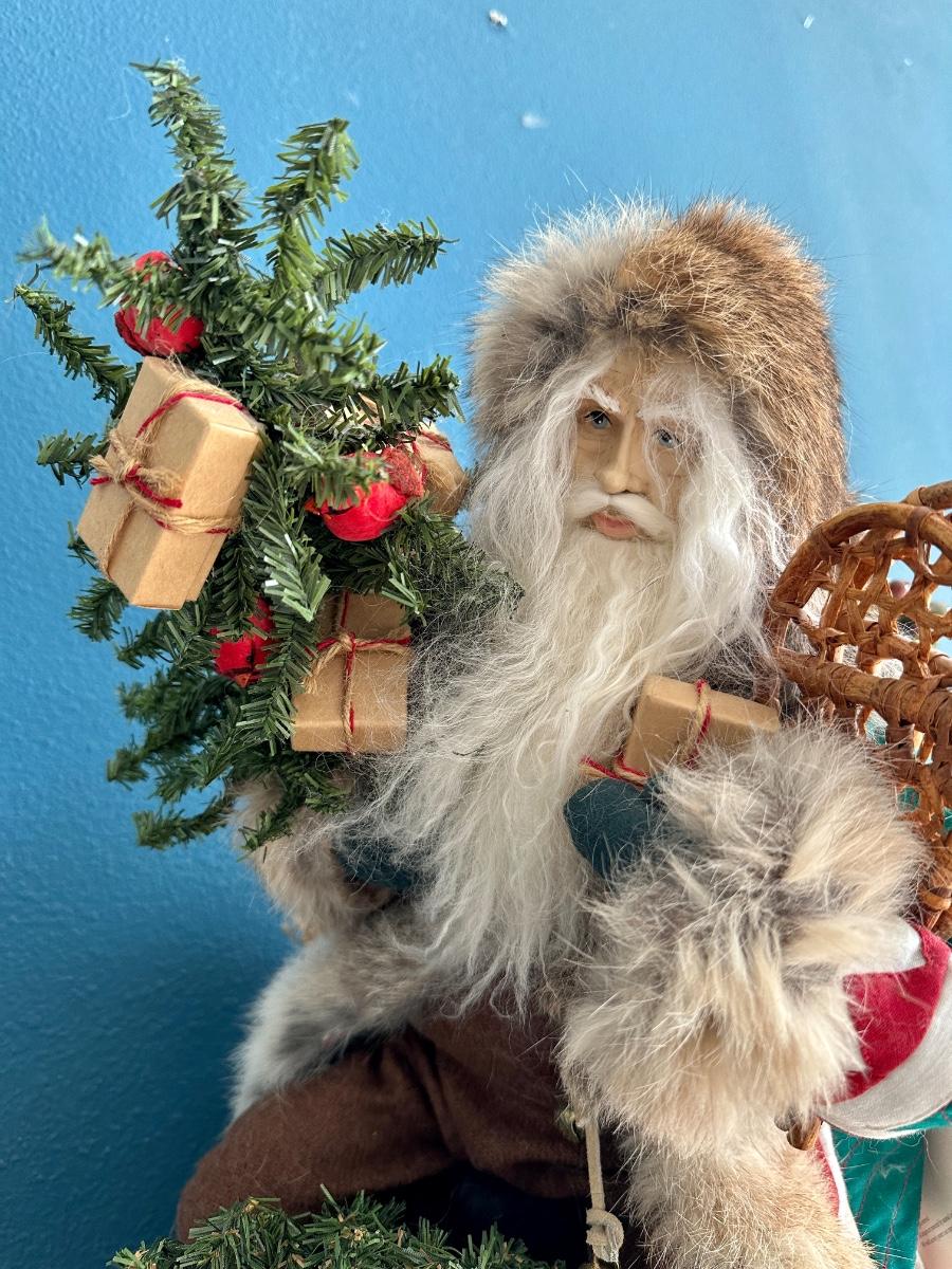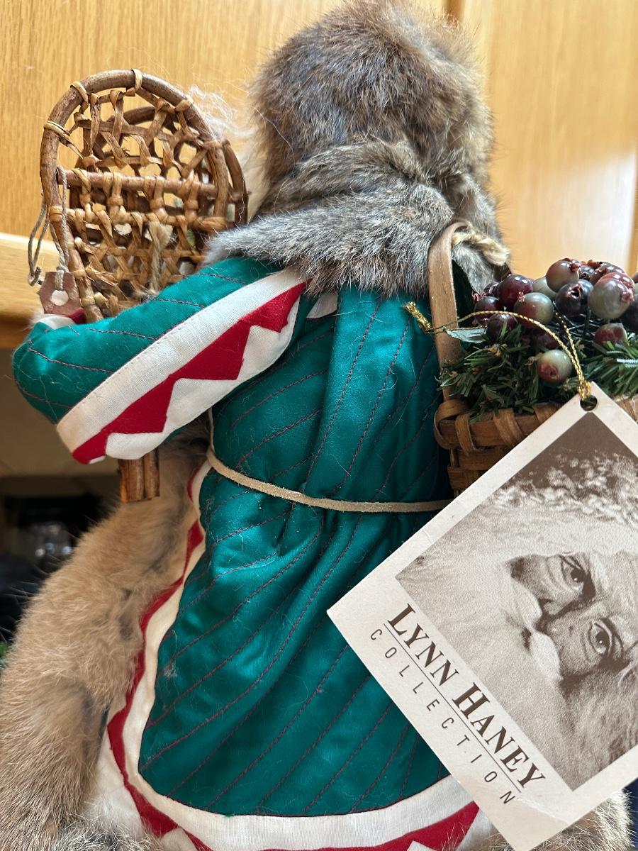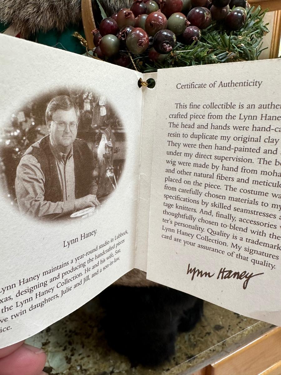Lynn Haney Collection Santa. Santa, in fur-trimmed clothing, rides a black bear also made with real fur. Santa carries a tree with toys and packages. Purchased at the former Portland institution, Norm Thompson. Certificate of Authenticity included along with a Lynn Haney Collection booklet. Due to the high value of this item, insurance will be required if shipped.
