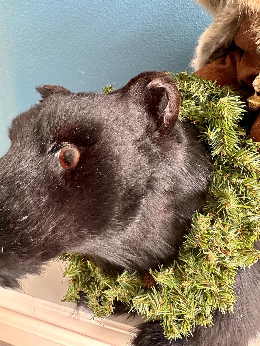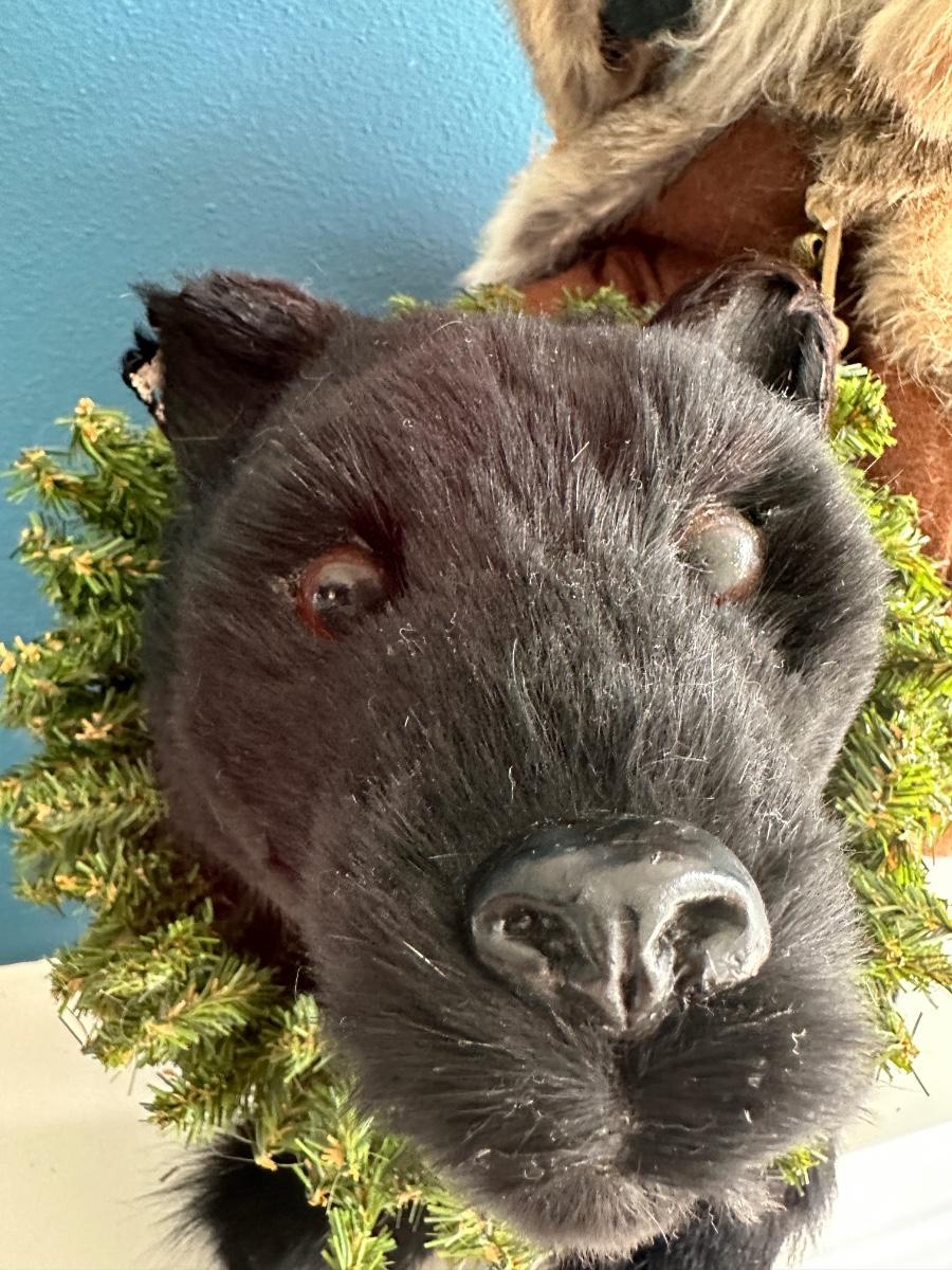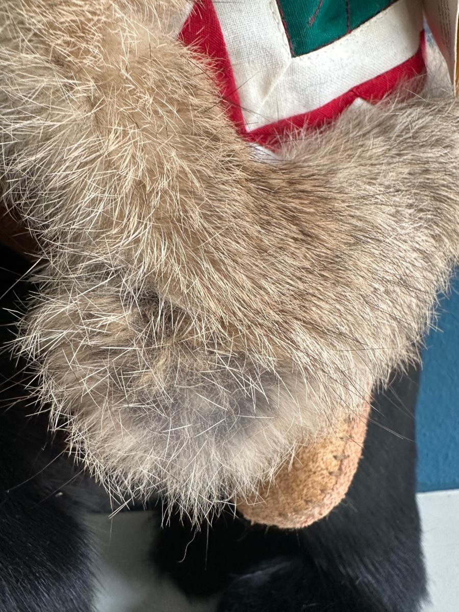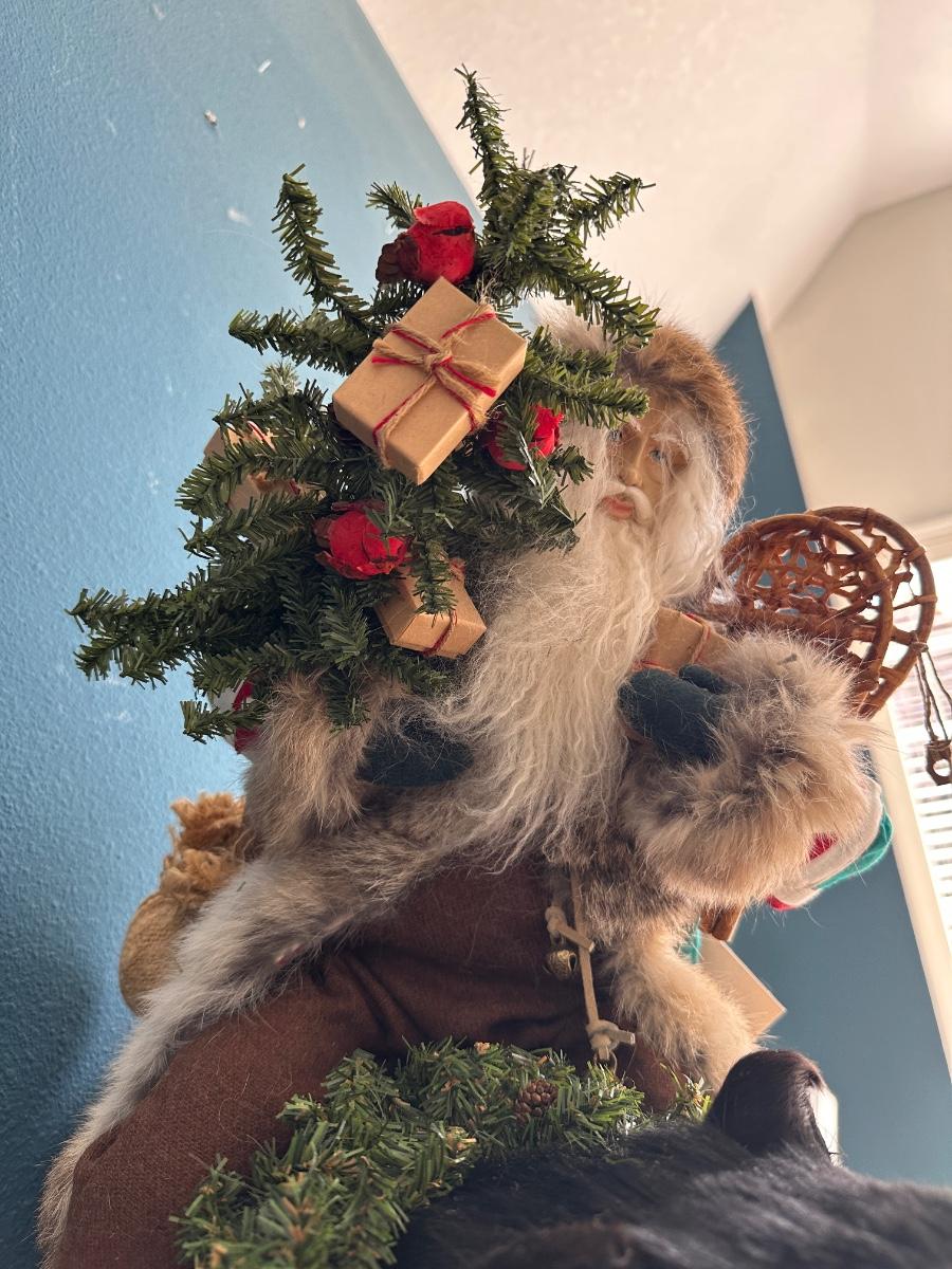 Lynn Haney Collection Santa. Santa, in fur-trimmed clothing, rides a black bear also made with real fur. Santa carries a tree with toys and packages. Purchased at the former Portland institution, Norm Thompson. Certificate of Authenticity included along with a Lynn Haney Collection booklet. Due to the high value of this item, insurance will be required if shipped.