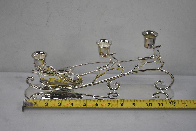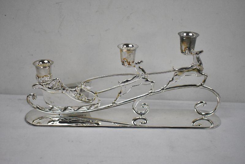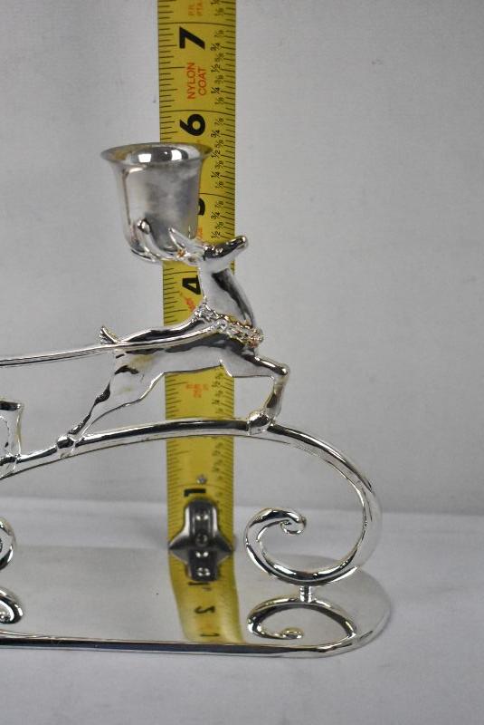 Santa & Reindeer Candle Holder, Silver Toned - New Condition