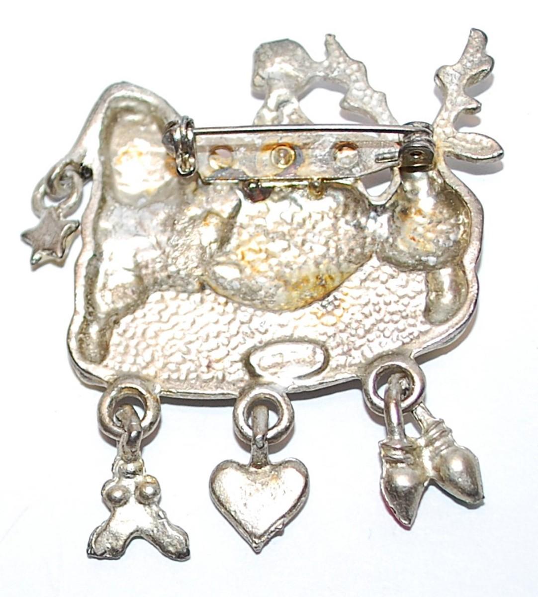 Santa, Reindeer & Snowman HOLIDAY BROOCH (2" x 1¾") "Friends are the best presents" on a Silver Tone Setting