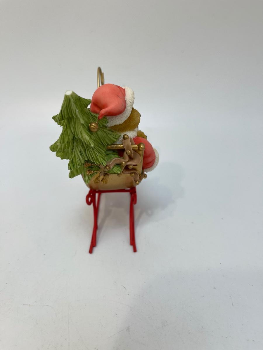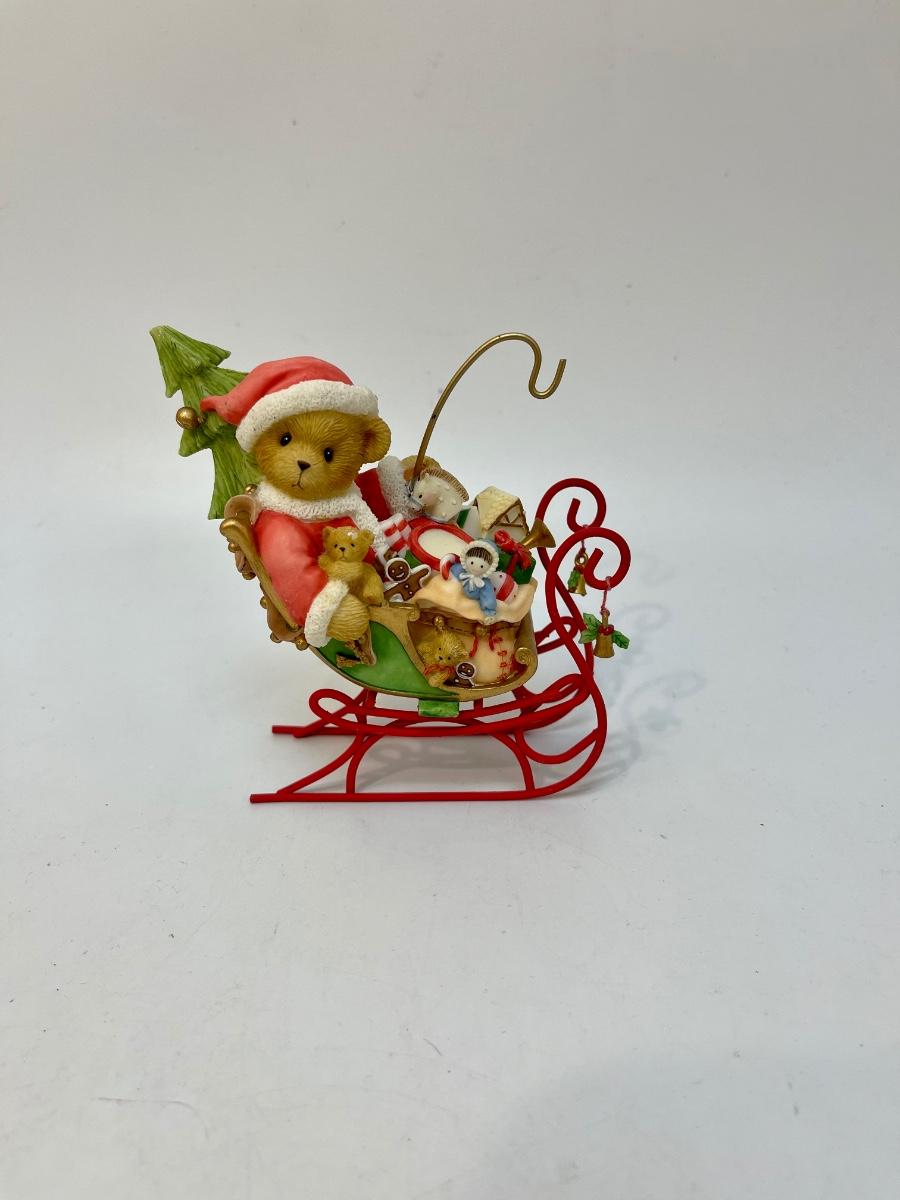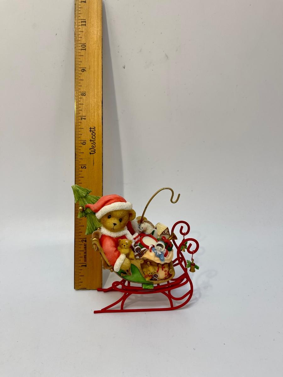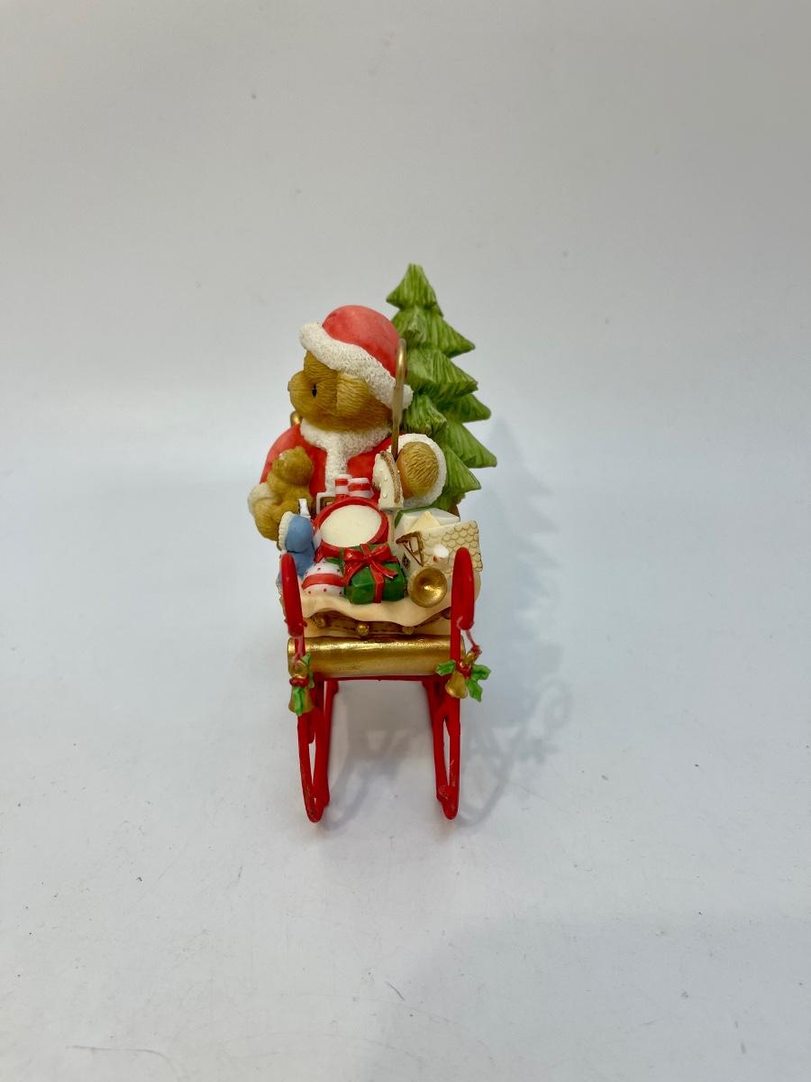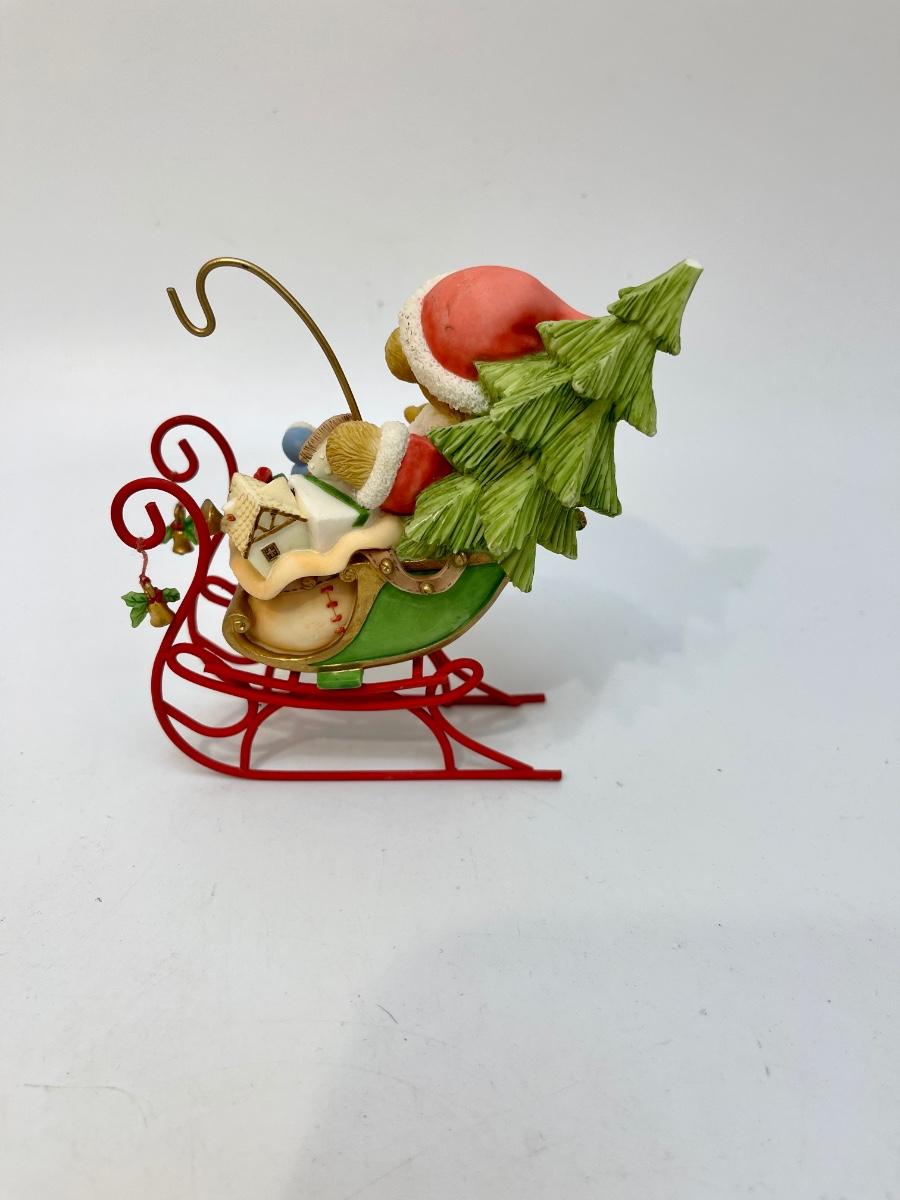 Cherished Teddies Christmas Holiday Santa Claus Teddy Bear in Sleigh Figurine. Good condition.
