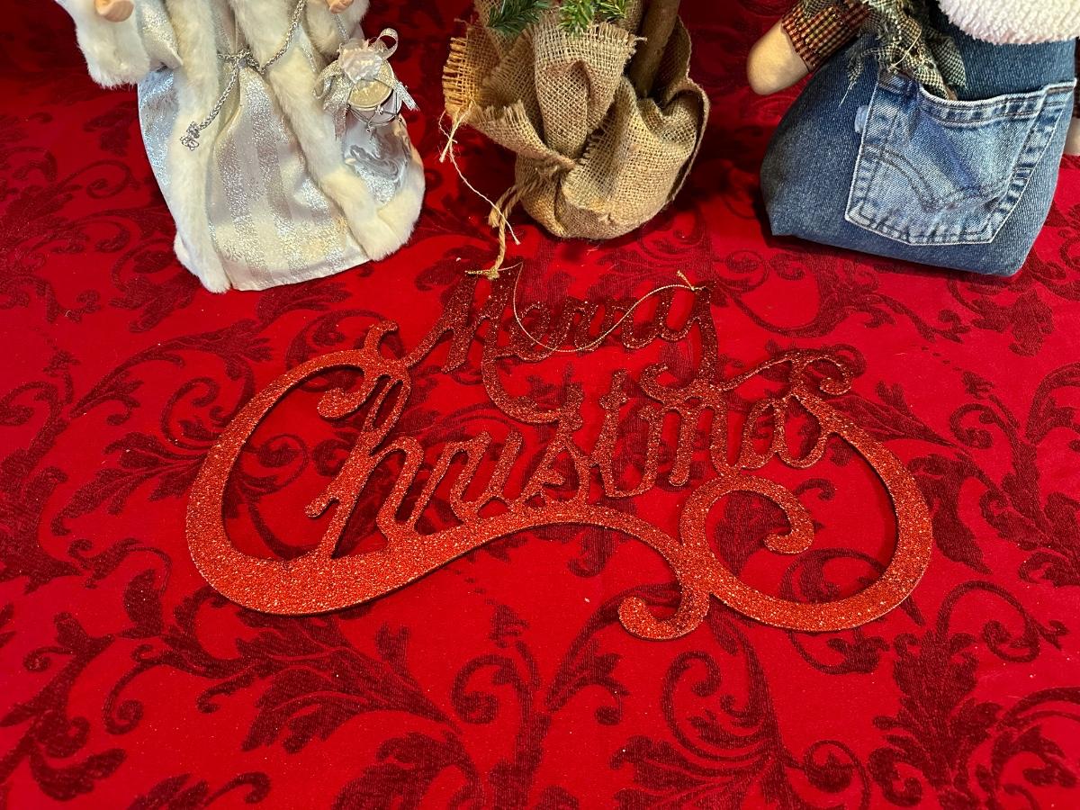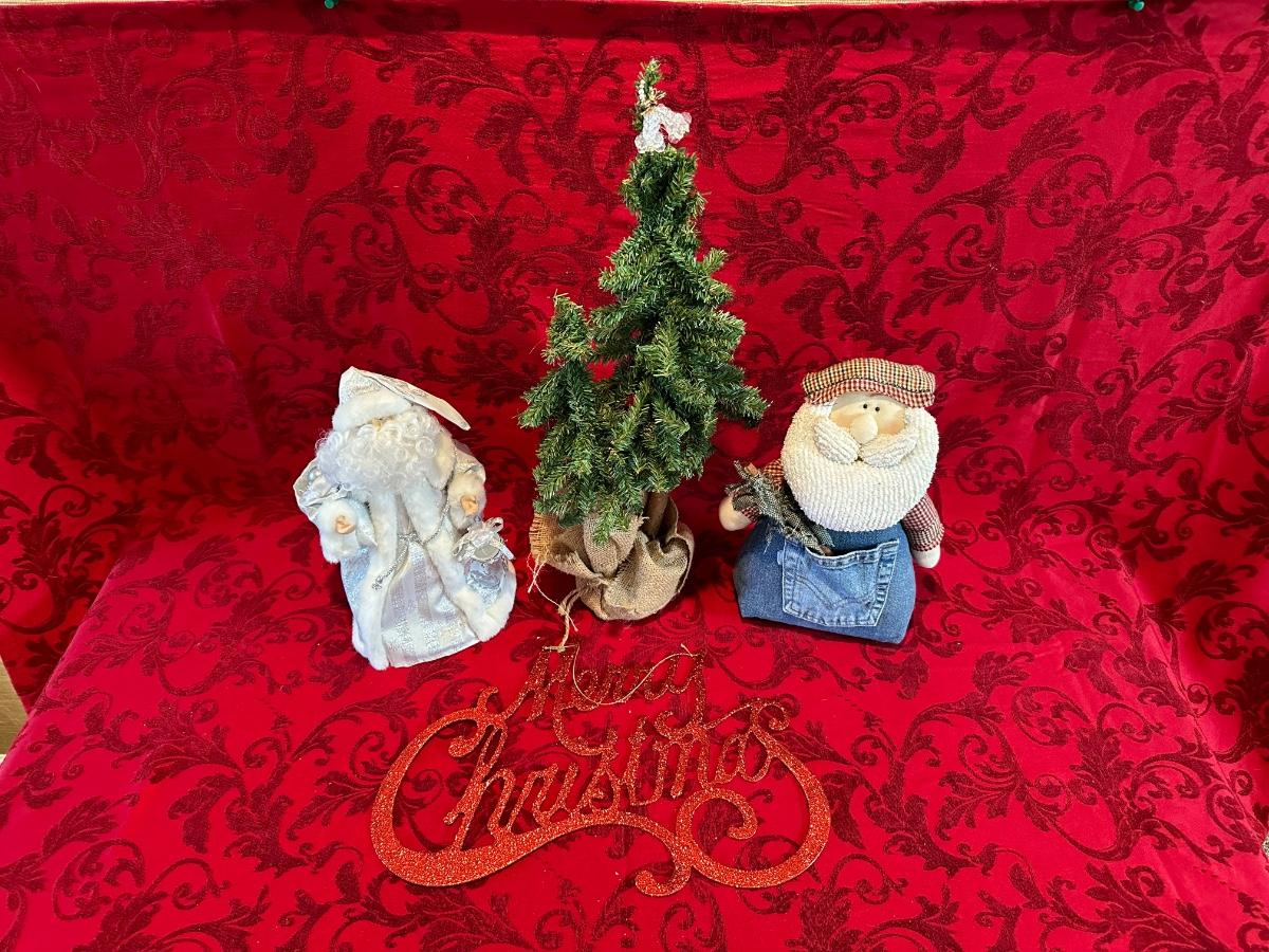 SANTA TREE TOPPER, TABLE TOP CHRISTMAS TREE AND HANGING MERRY CHRISTMAS SIGN