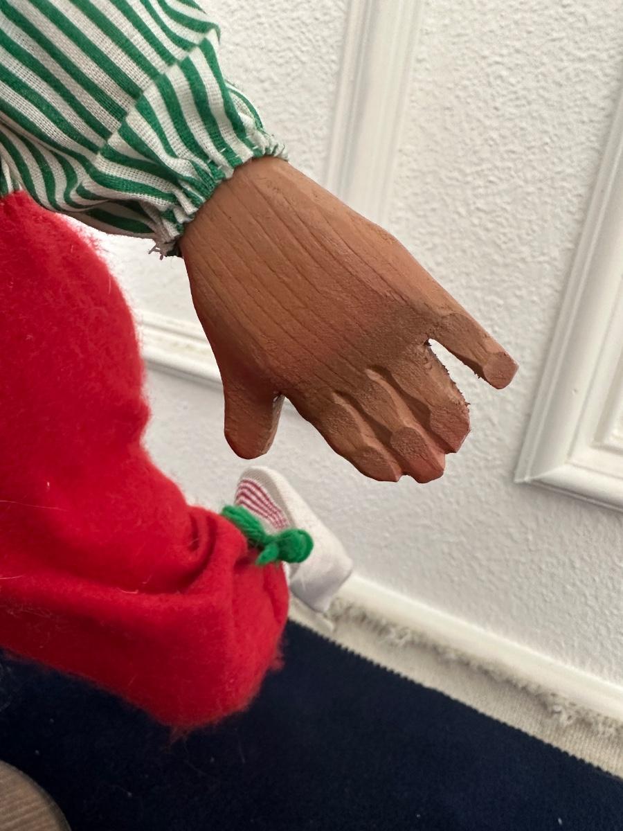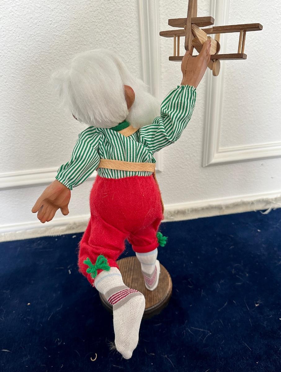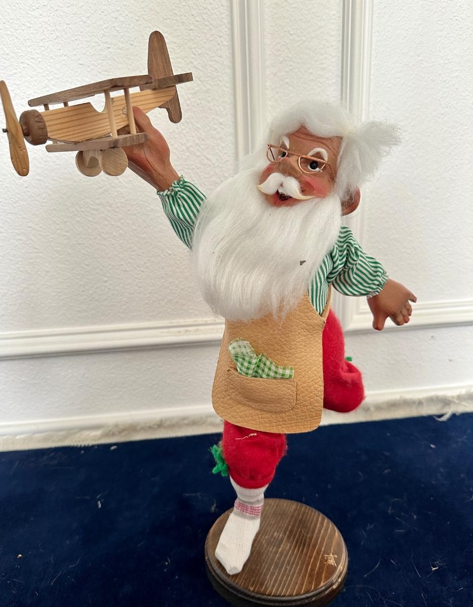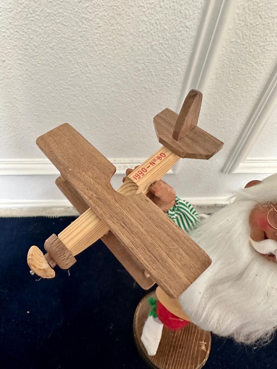 Carved wooden Santa with plane from 1990. 15 inches high.