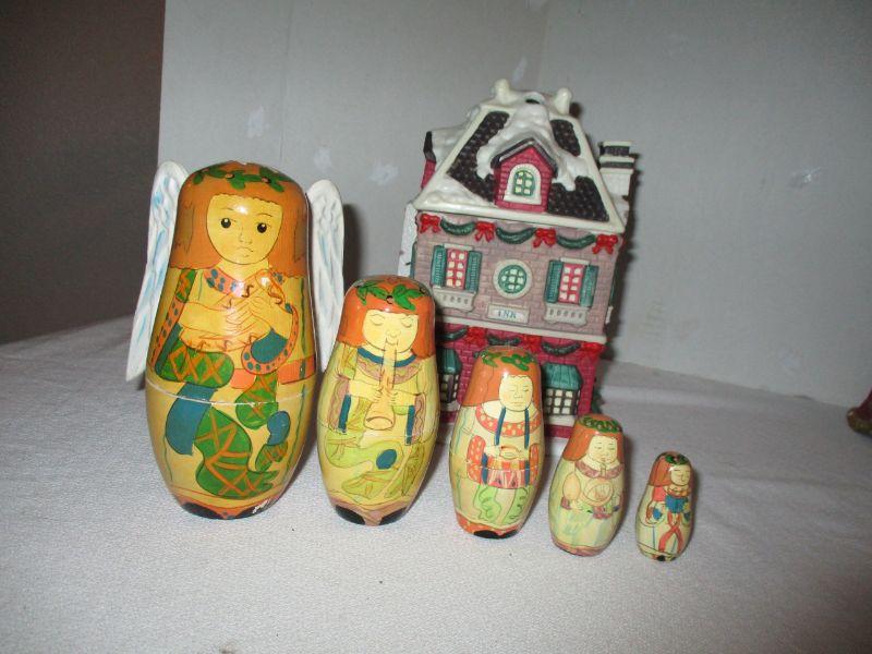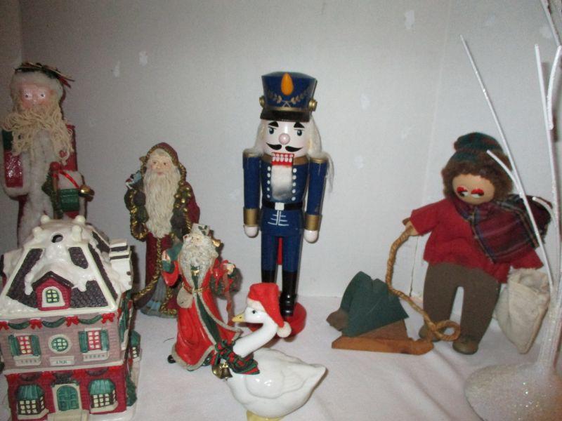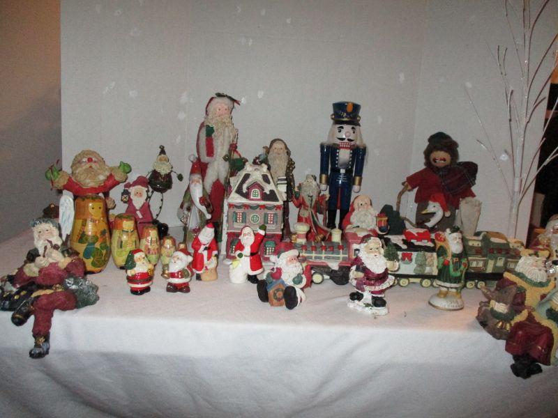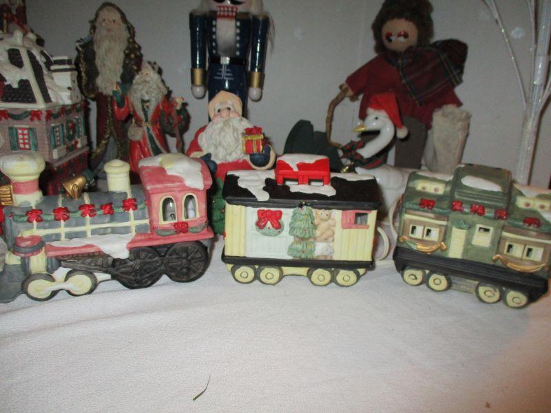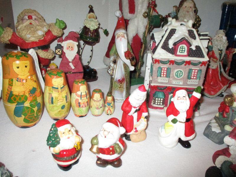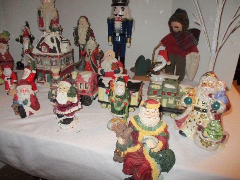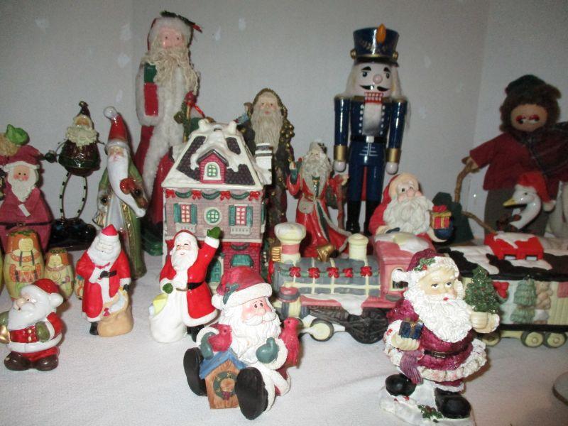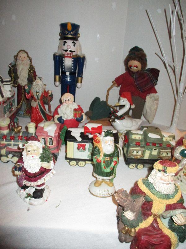 SANTA FIGURINES OF MANY SIZES AND VARIETY, LIGHT UP TRAIN, NUTKRACKER, HOUSE LIGHTS UP, ,WOOD NESTERS AND MORE HO HO HO