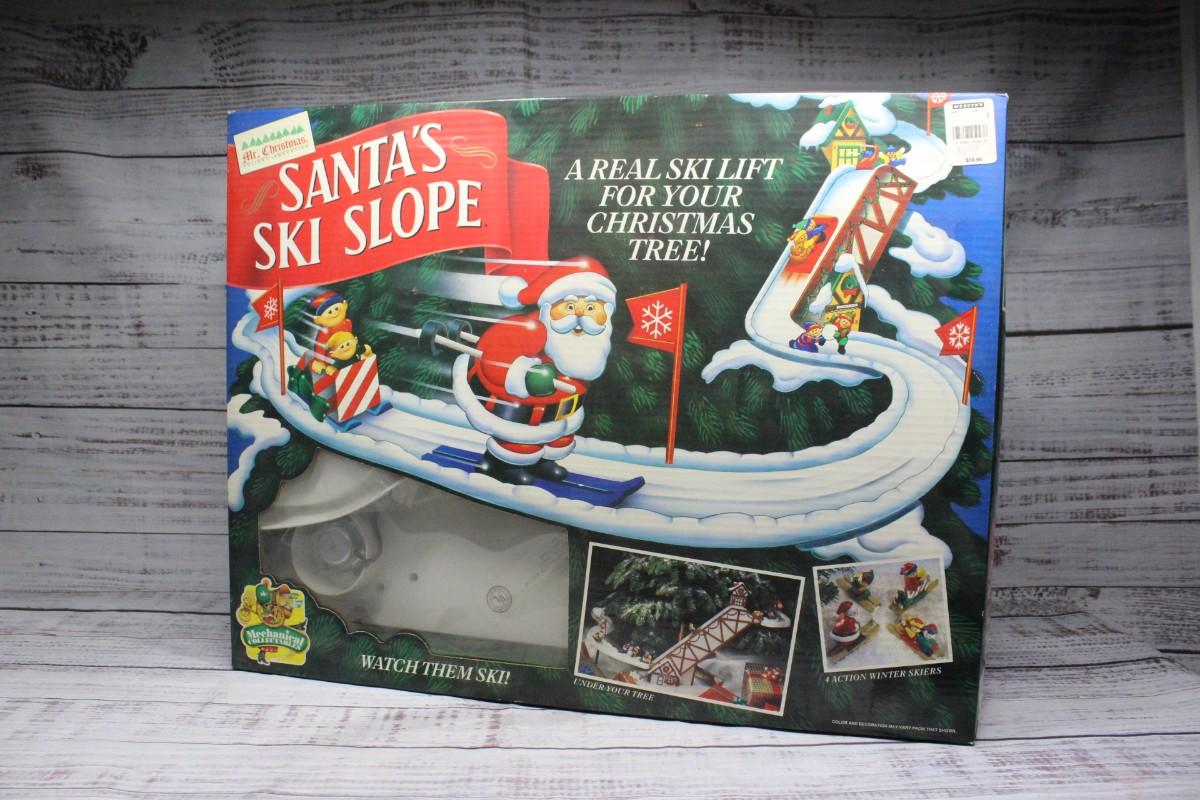 Santa's Ski Slope Christmas Tree Electronic Decoration, there's no significant damage to any of the pieces and is in good condition. Comes with original box and packaging, check pictures for more details. Has not been tested.