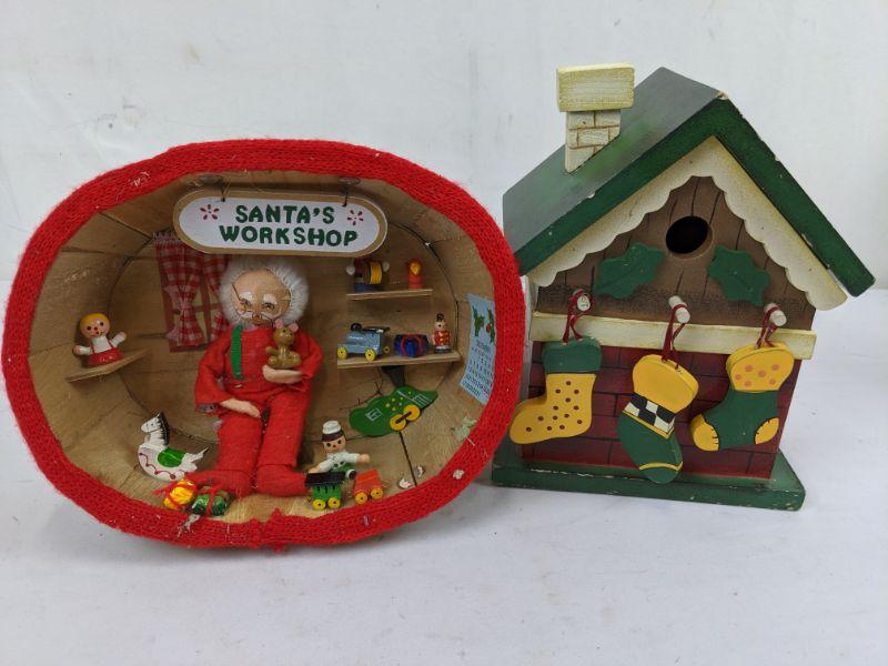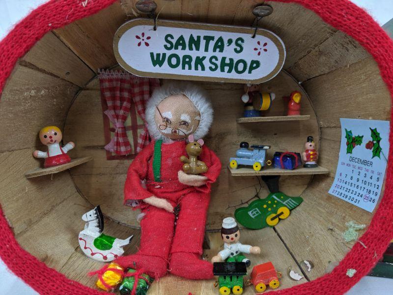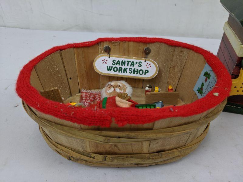 Santa's Workshop in a Basket & Birdhouse with Stockings (Debbie Mumm)