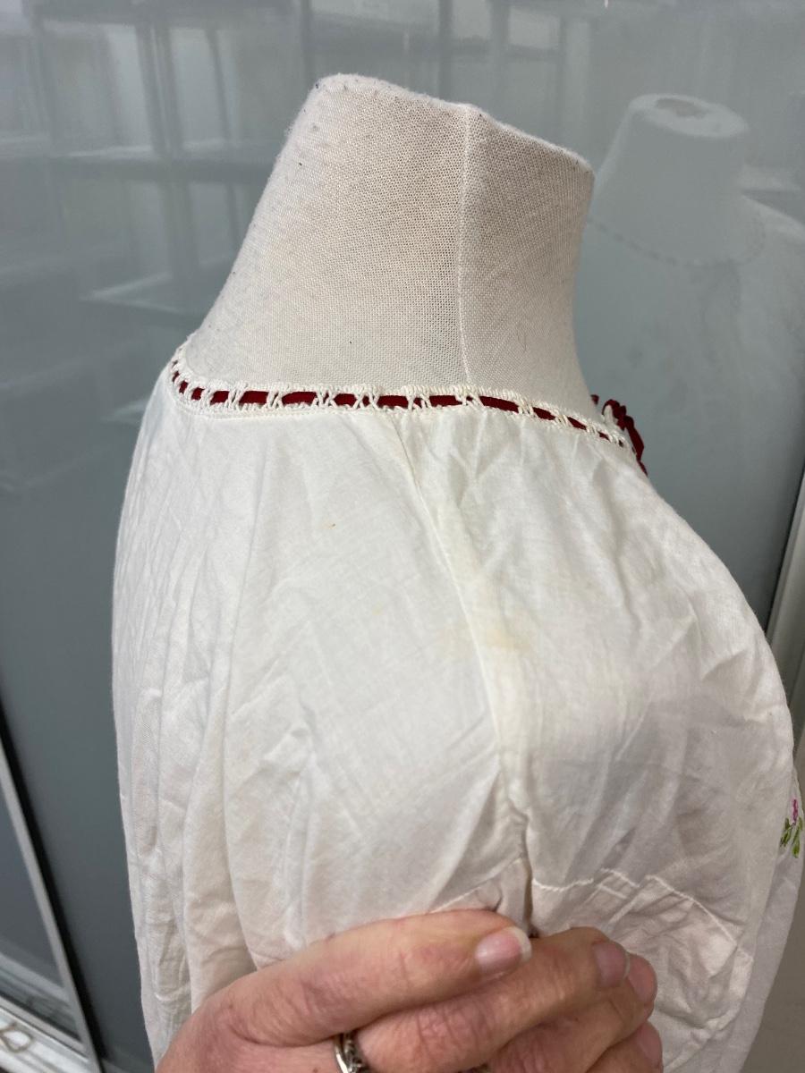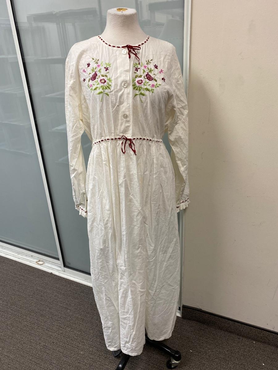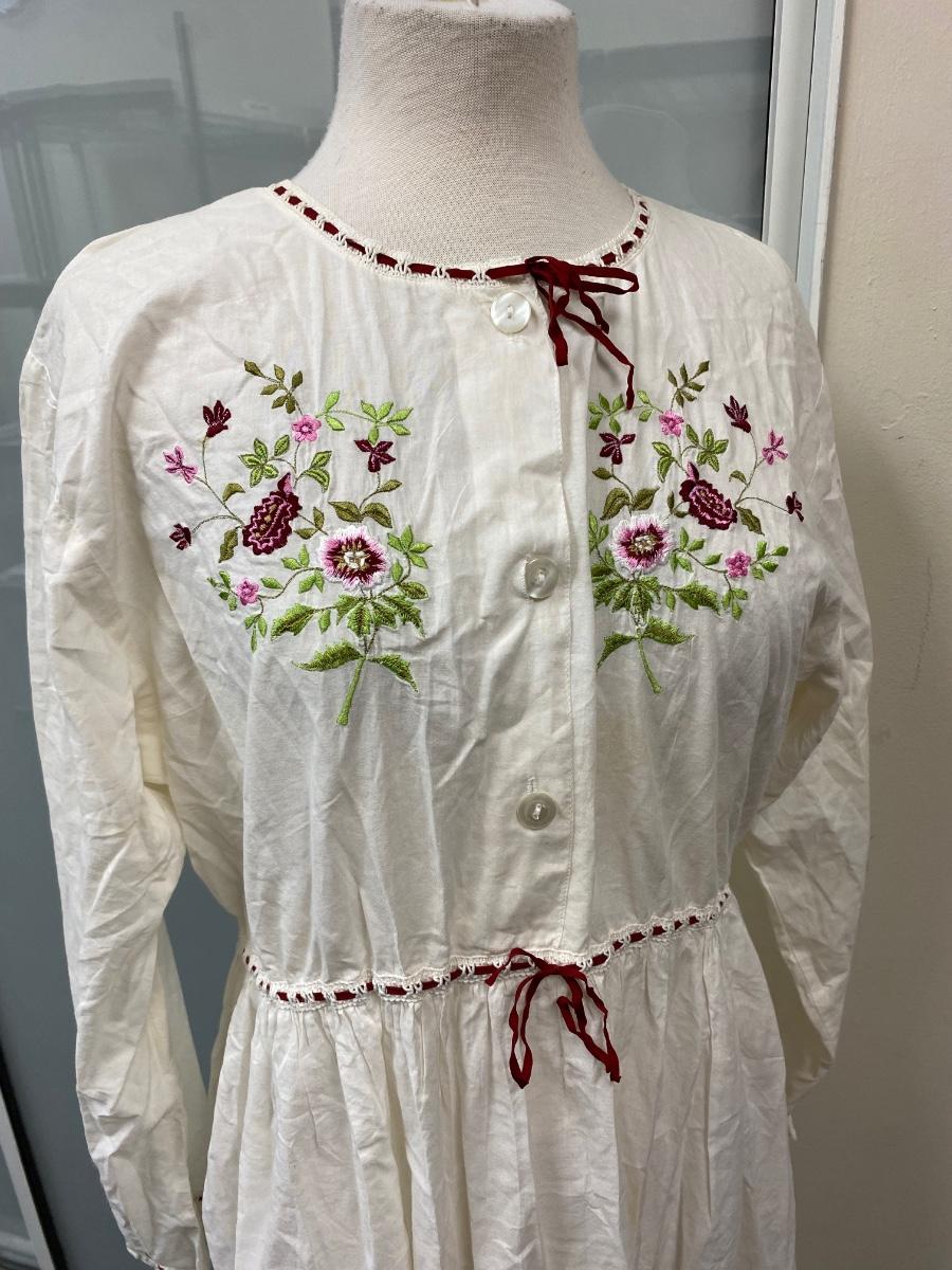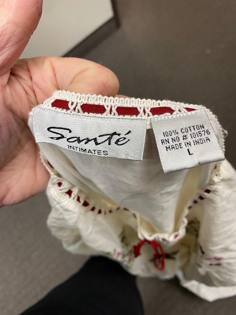 Sante Intimates White Cotton Flower Embroidered Nightgown. In good condition, did notice a couple very small faint spots. Size large.