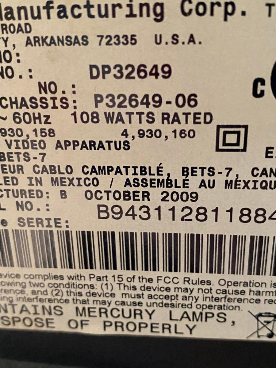 Sanyo Flat Screen TV 32" 720p HD LCD #DP32649. Seems to work, did not have cable to check picture quality. No remote.