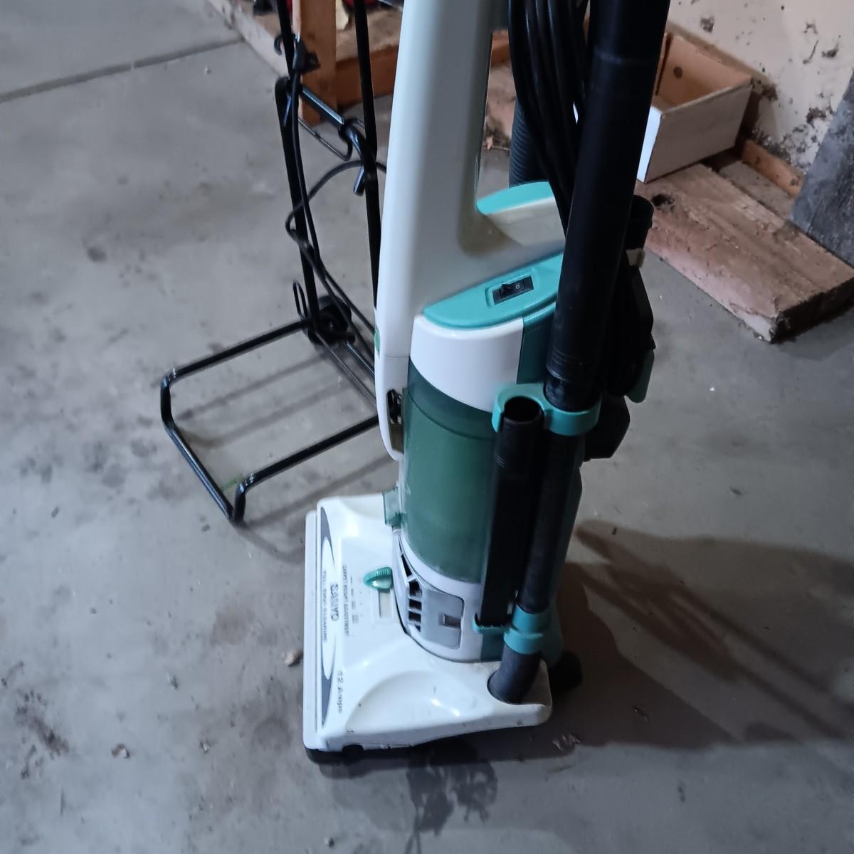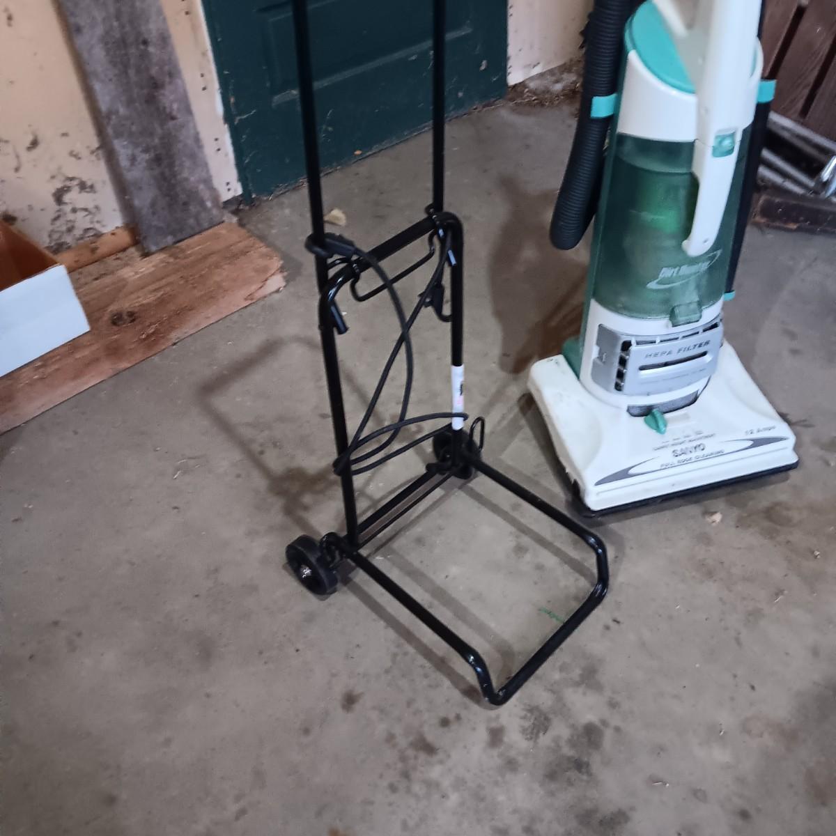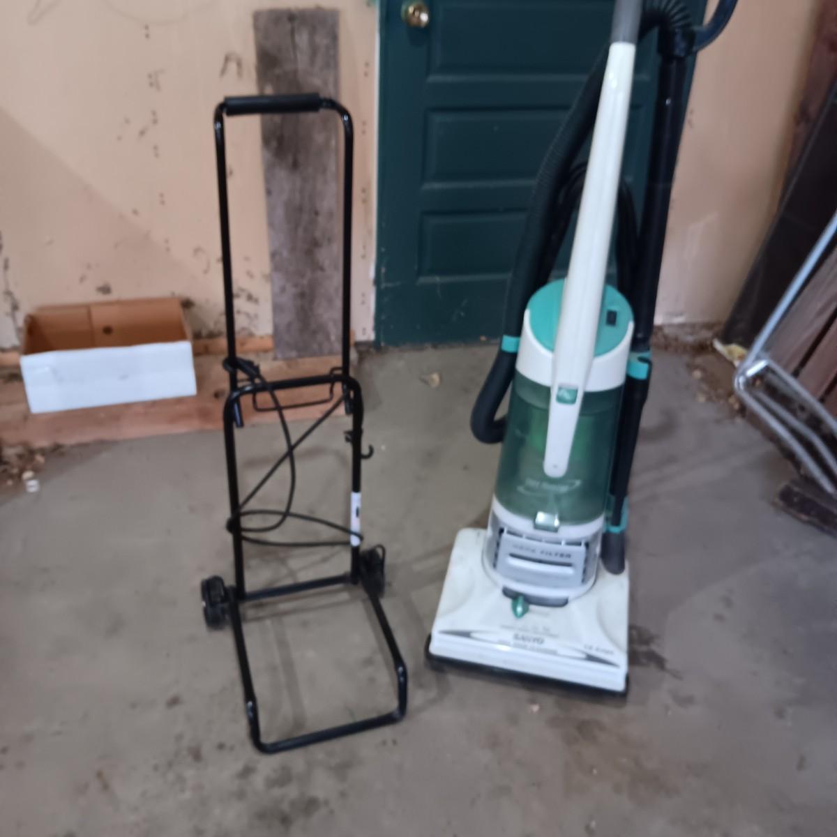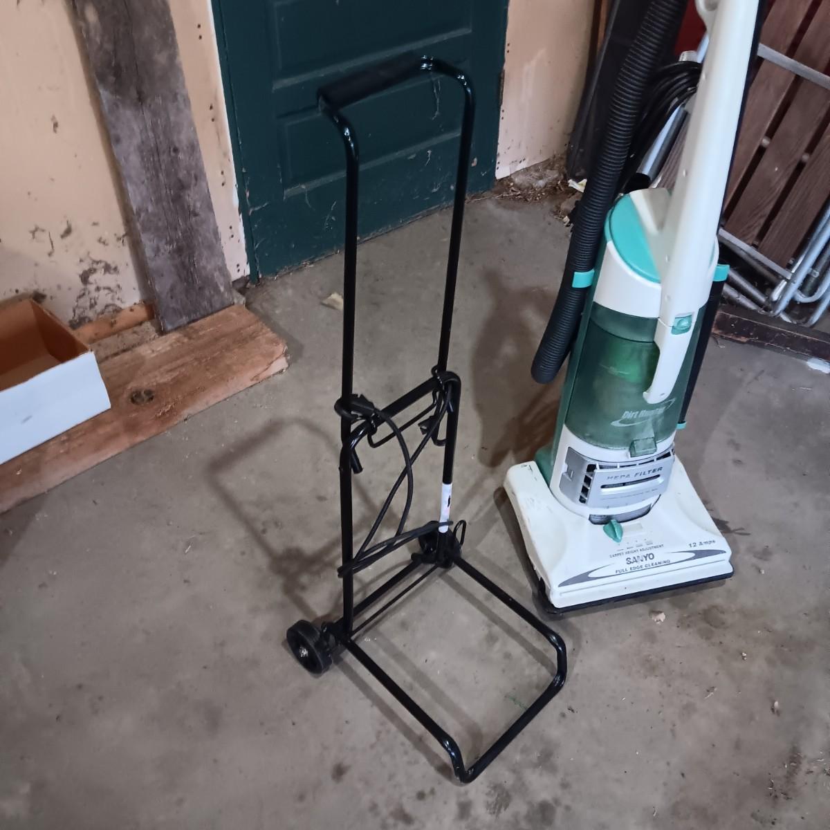 SANYO VACUUM AND A LUGGAGE DOLLY