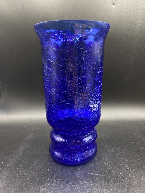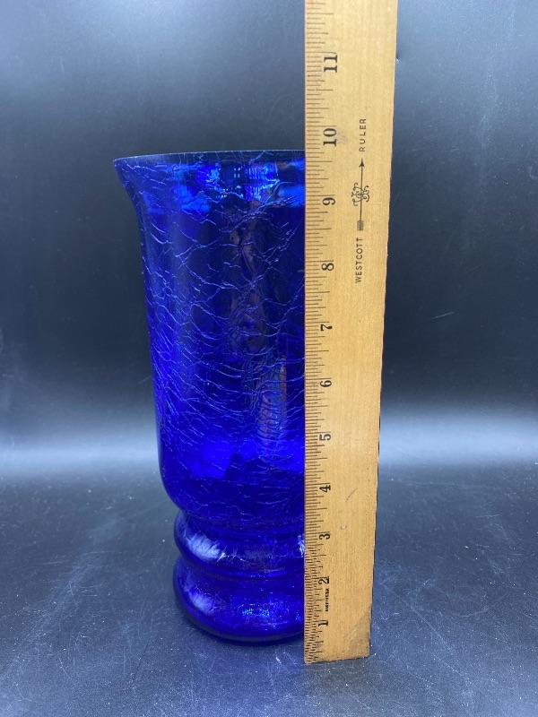 Sapphire Blue Crackle Art Glass Vase YD#017-1120-00067