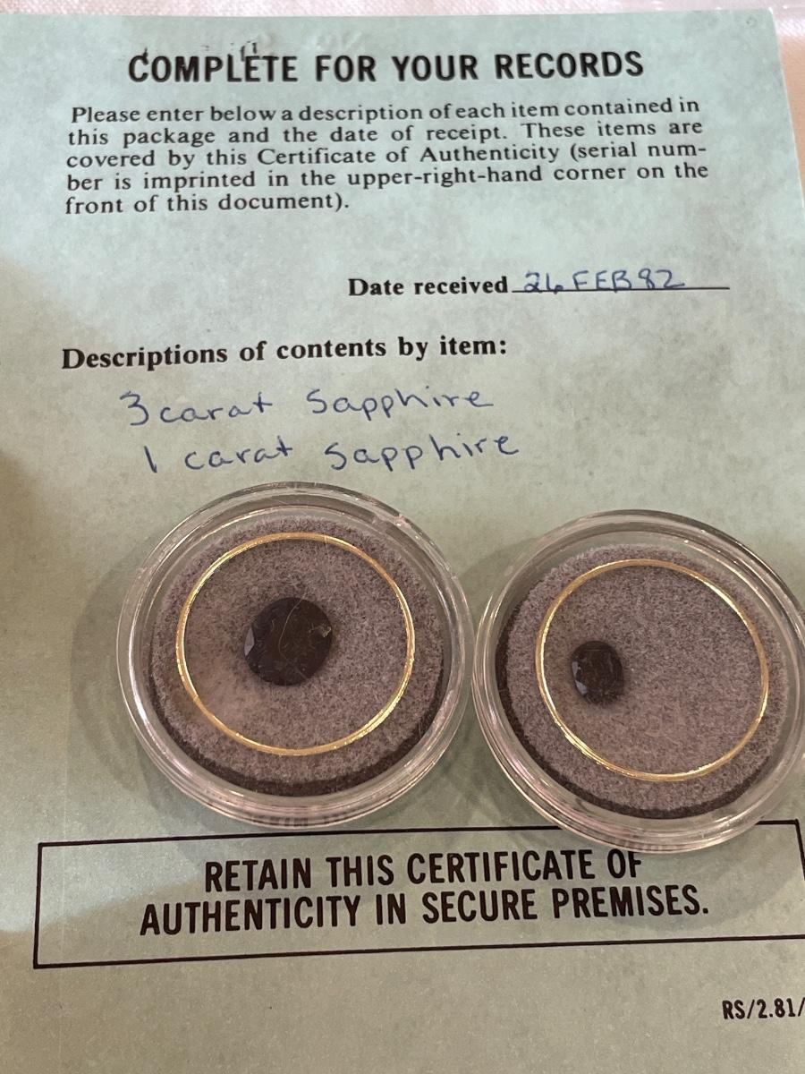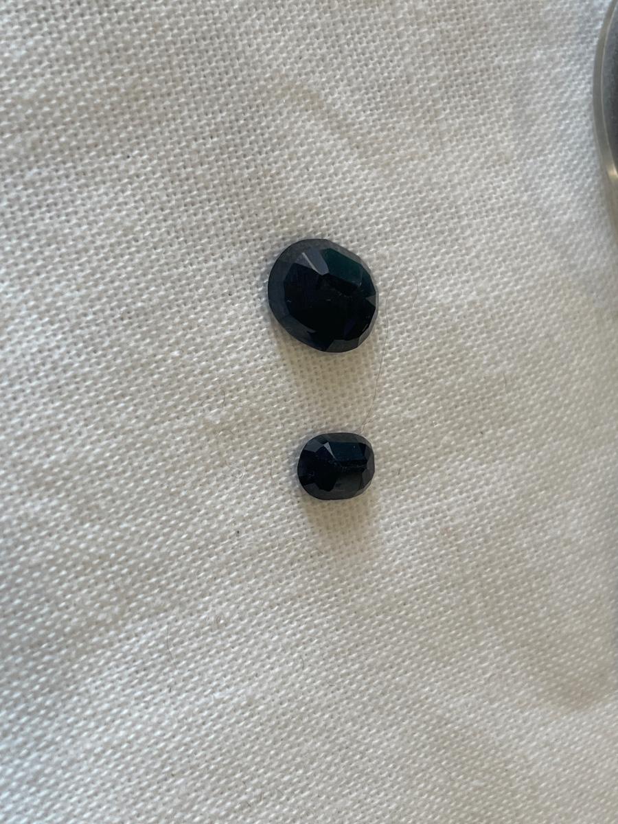 One is a 1 carat and the other is a 3 carat, sapphires are very dark in color