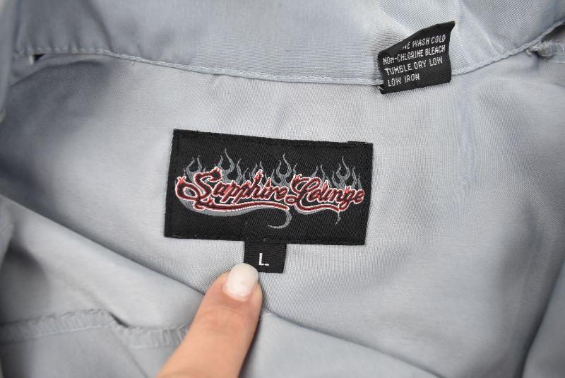 Sapphire Lounge Short Sleeve Button-Up Bowling Shirt Size Large. Black & Grays