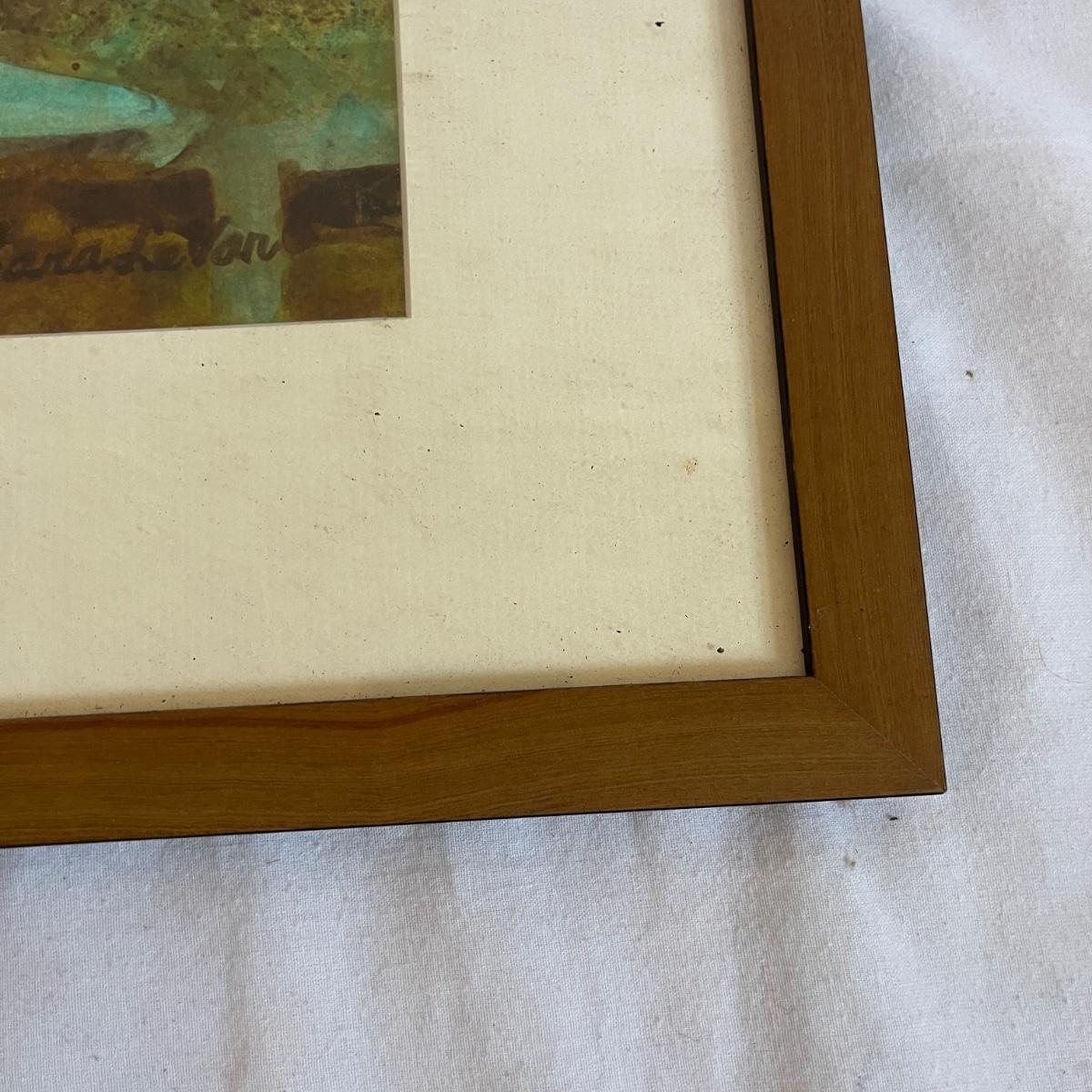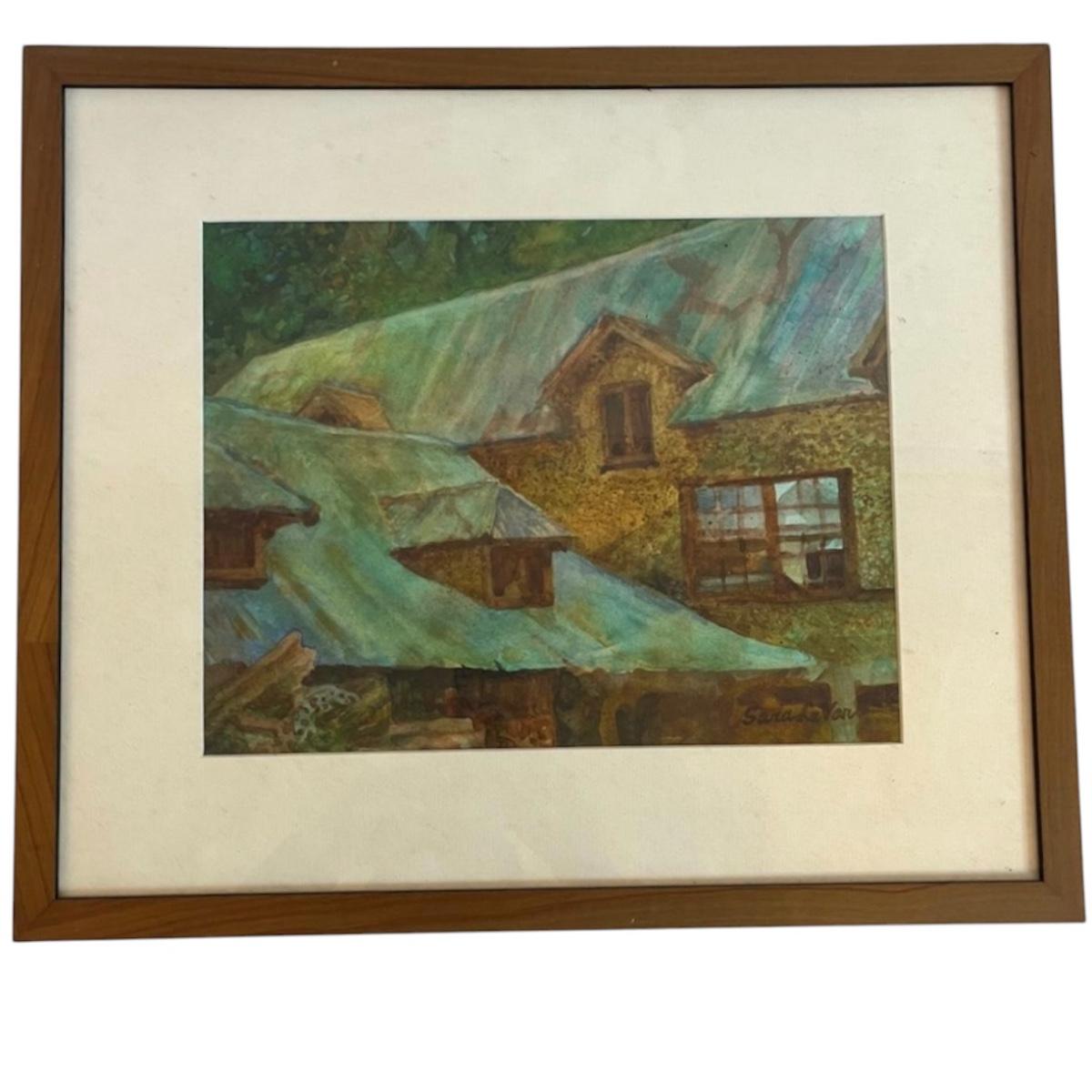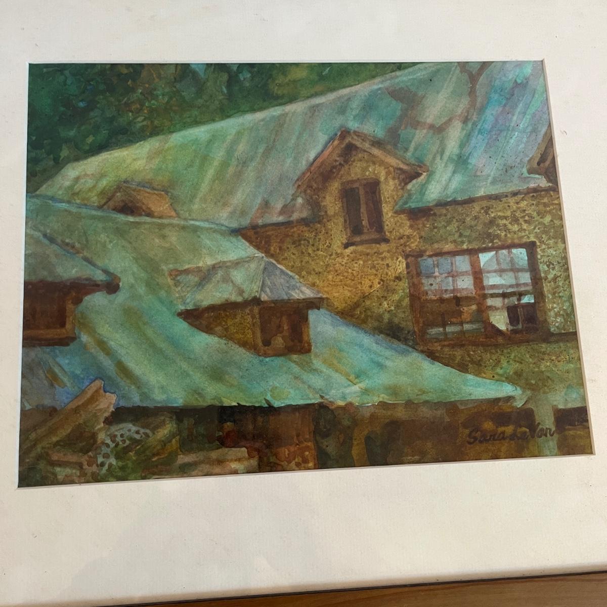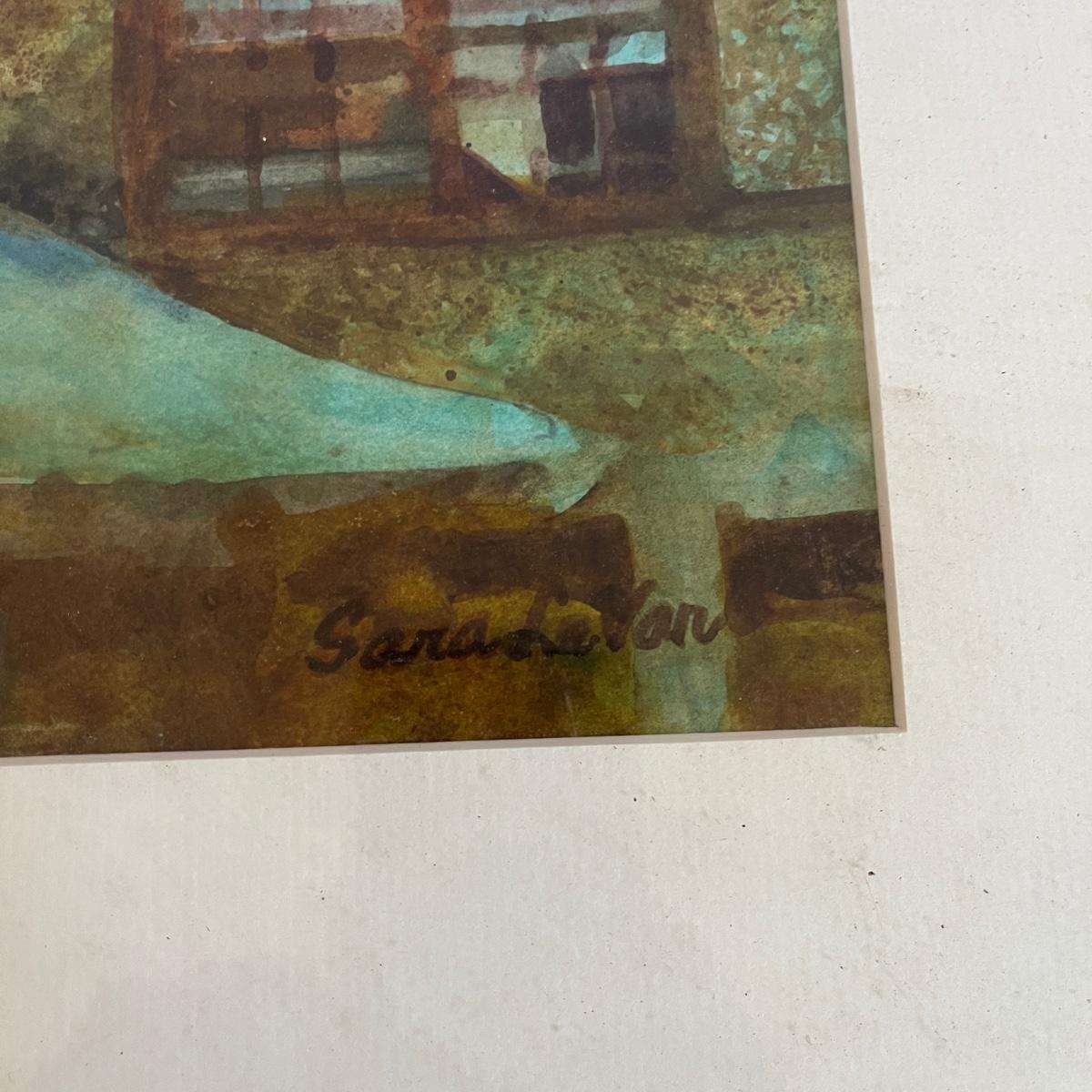 This wooden framed, matted and under glass signed watercolor painting is by local Black Mountain artist Sara Le Van. Frame measures 20” x 17”H.