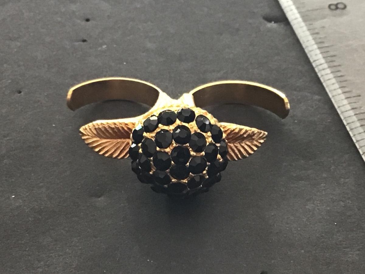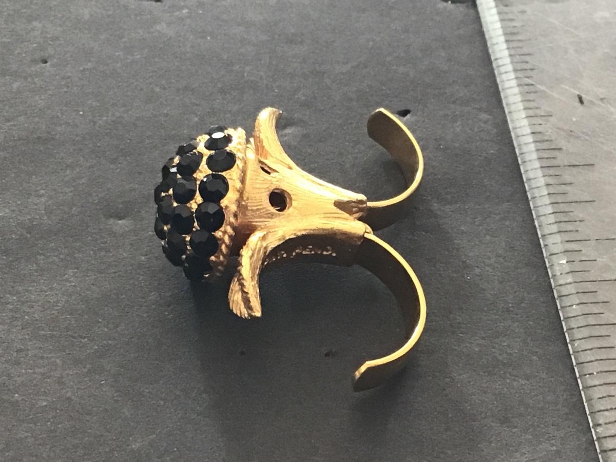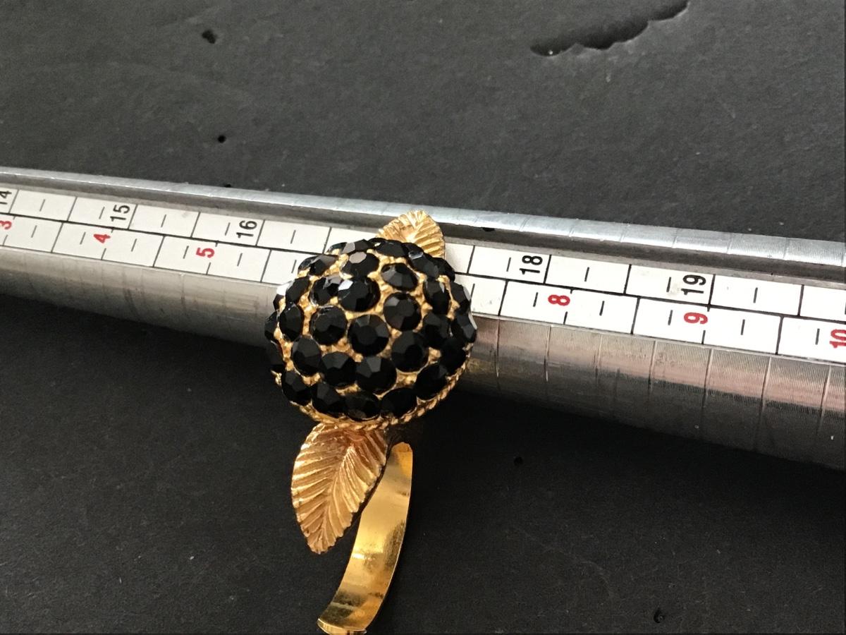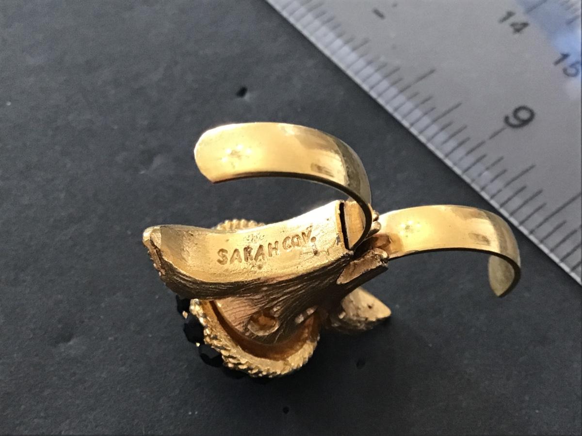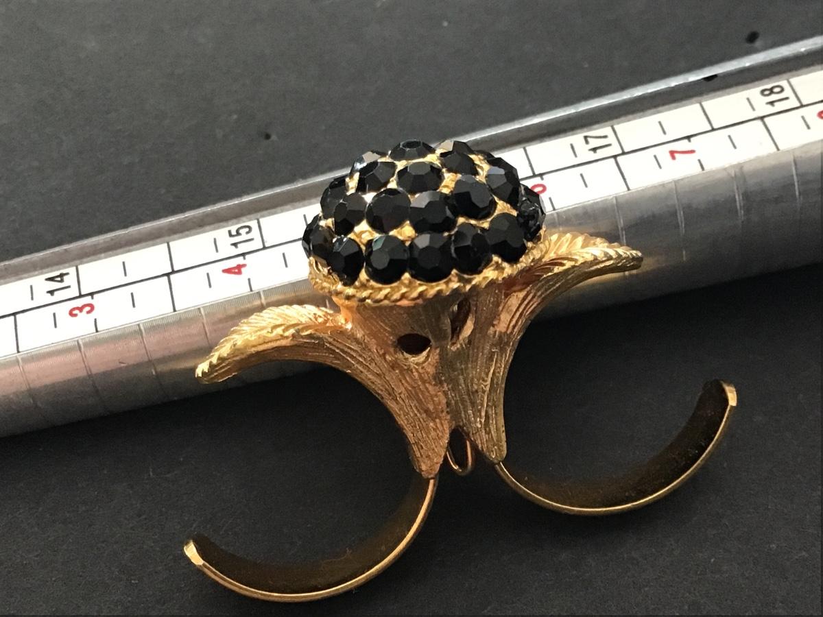 Sarah Coventry Double Finger Black Rhinestone Flower Leaf Ring