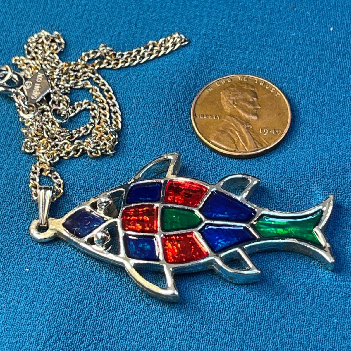 SARAH COVENTRY ENAMELED COLORFUL PANES FISH PENDANT NECKLACE