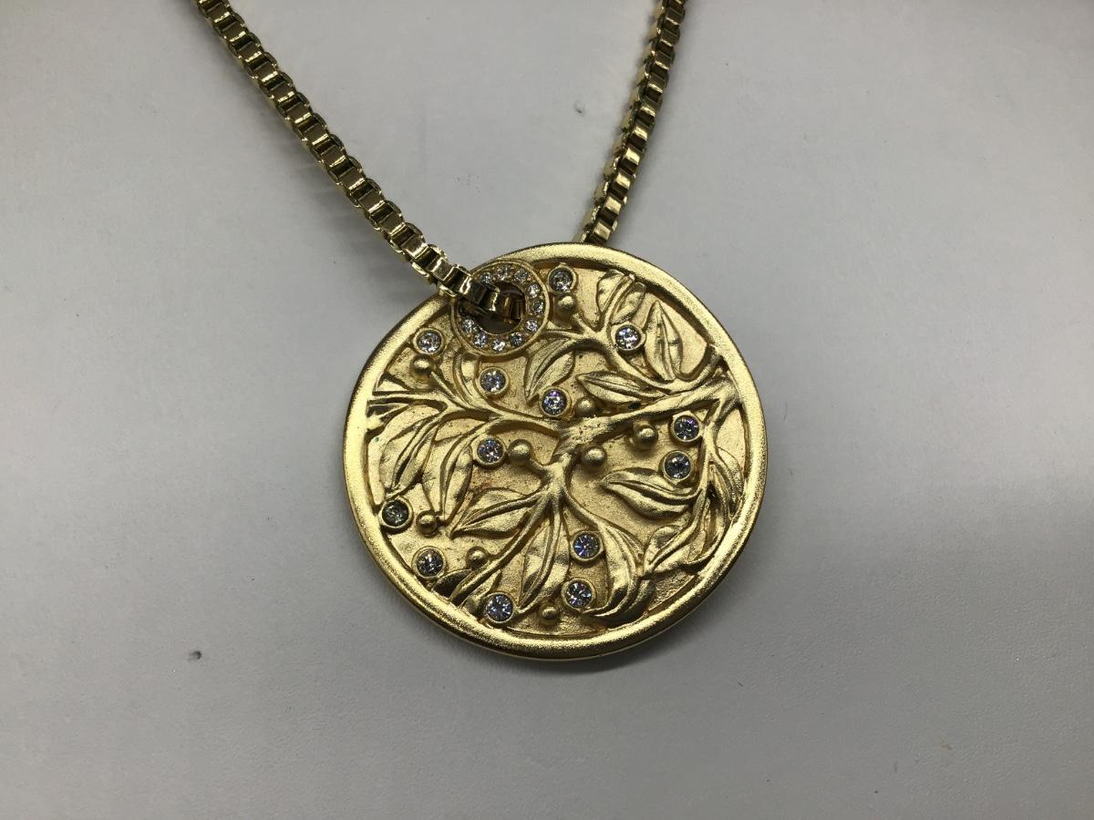 Sarah Coventry MEDALLION NECKLACE GOLD TONE RHINESTONES SIGNED