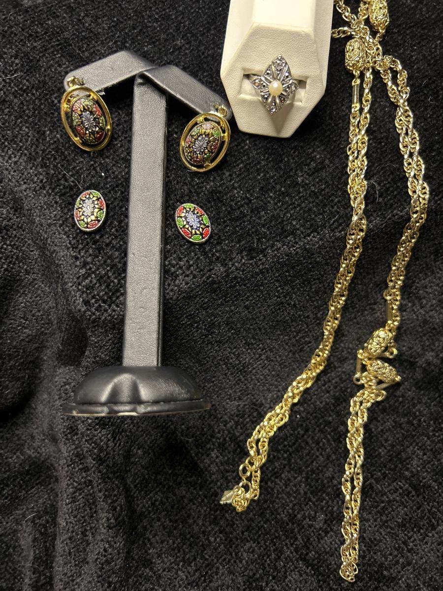 The 2 loose pieces must have been another pair of earrings (pierced). Silver tone Sarah Cov. Ring
