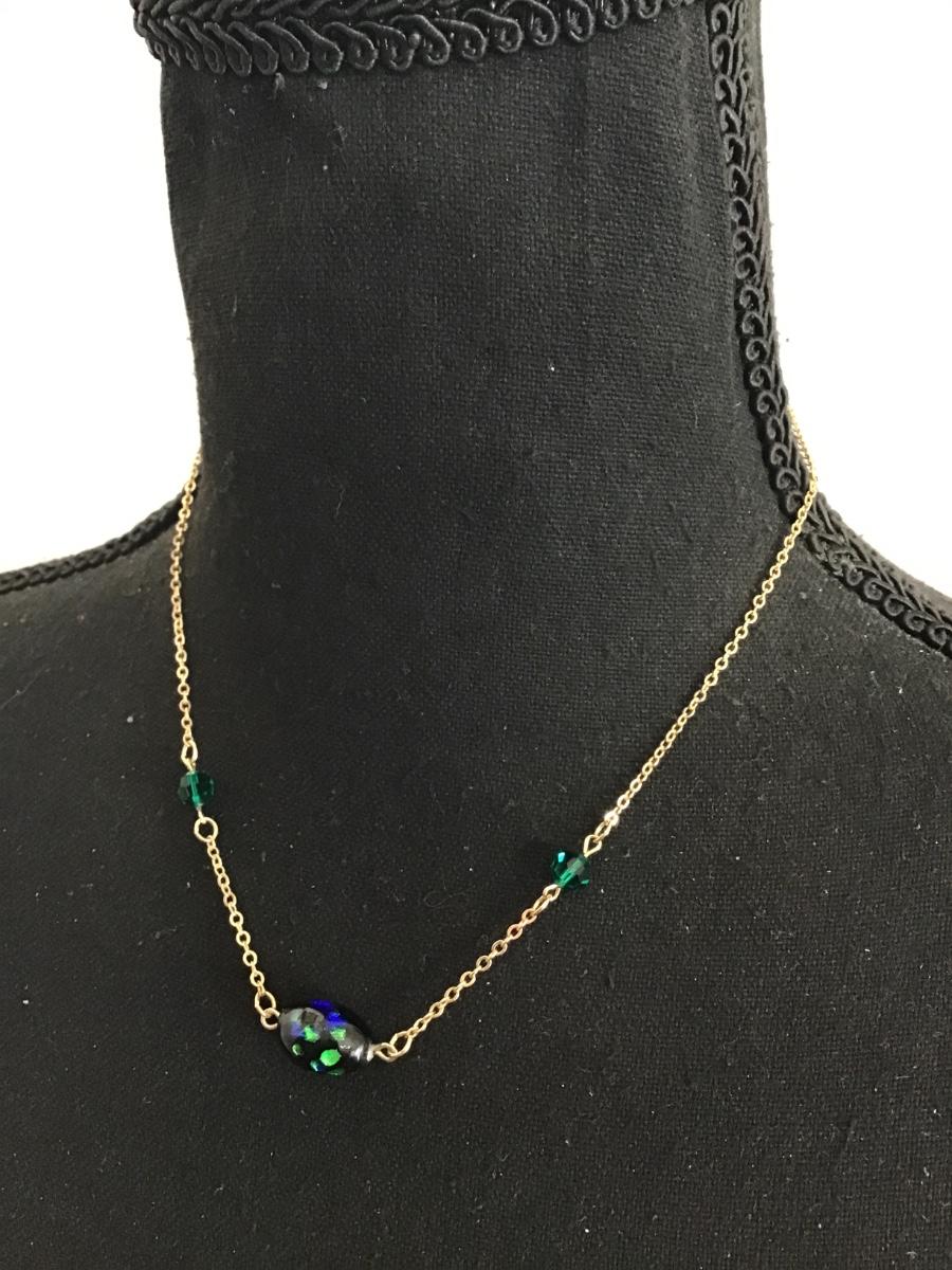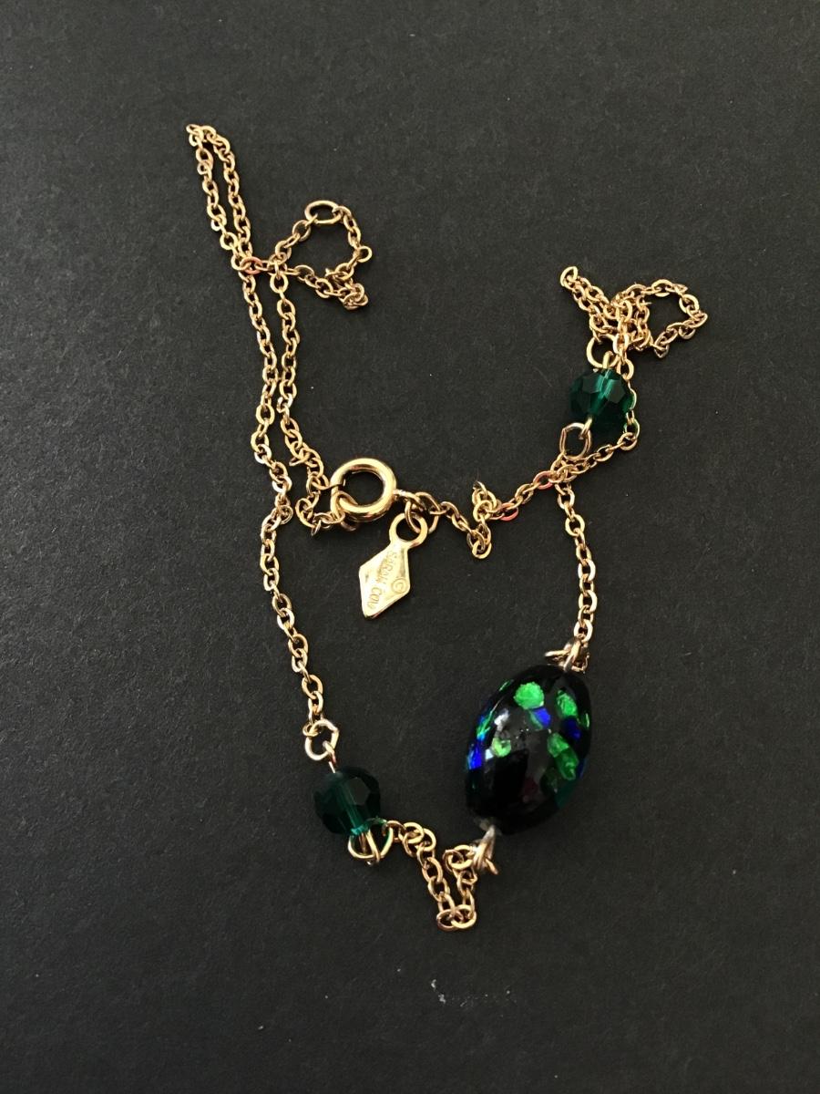 Sarah Coventry, vintage glass bead, gold tone, chain necklace