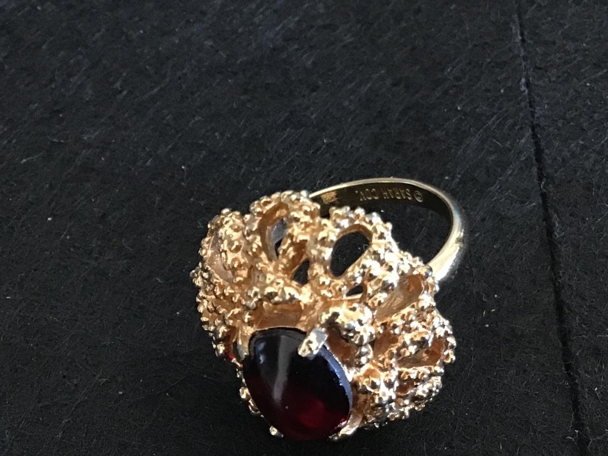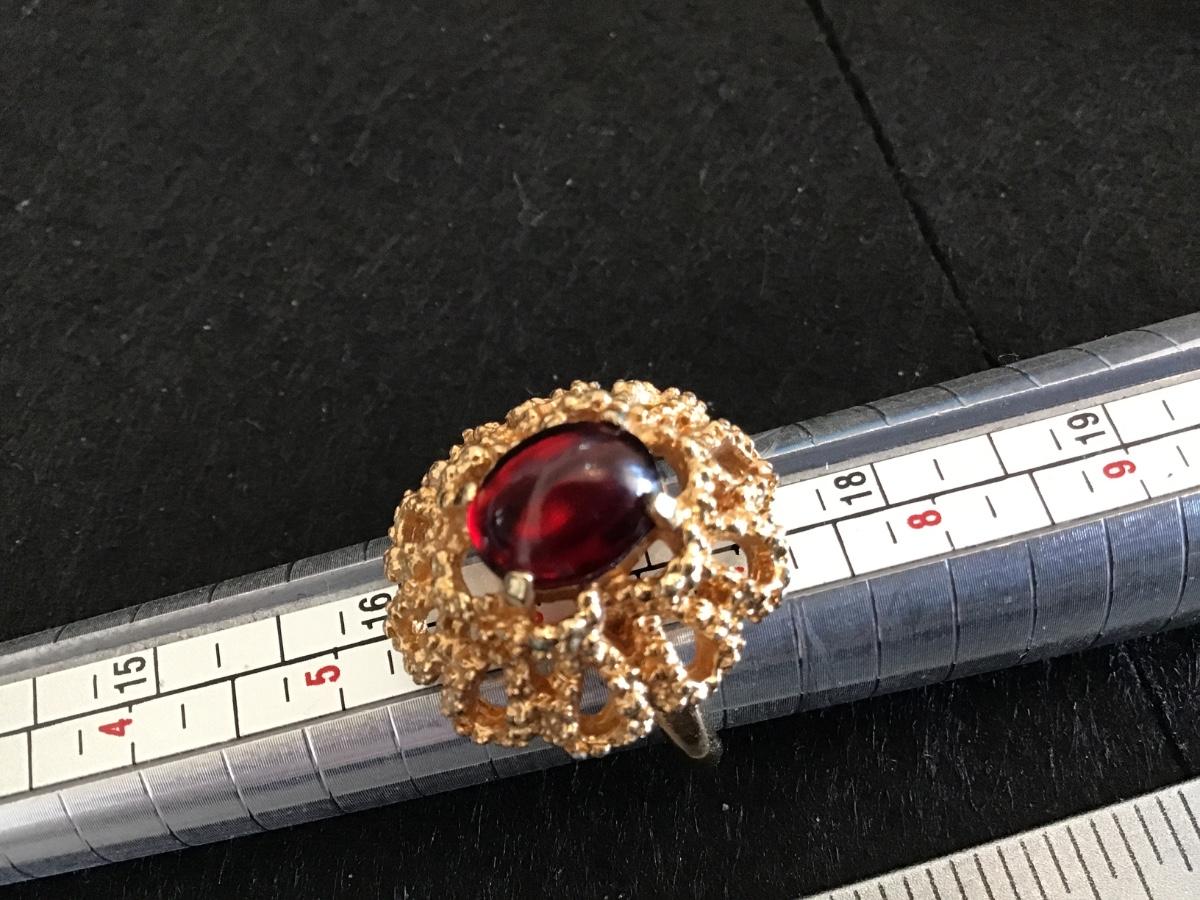 Sarah Coventry Vintage Ring Gold Tone Red Glass