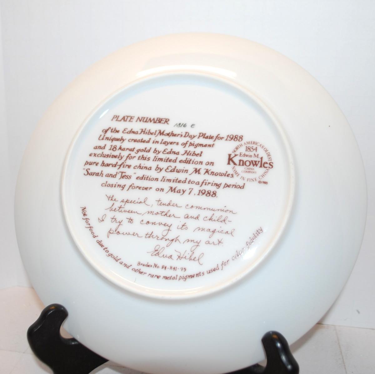 "Sarah & Tess" by Artist Edna Hibel - Includes: CERTIFICATE OF AUTHENTICITY, Plate #3371B, 8½" Diameter & Date Closing 1988, Mother's Day Plate, 18k Gold Pigment