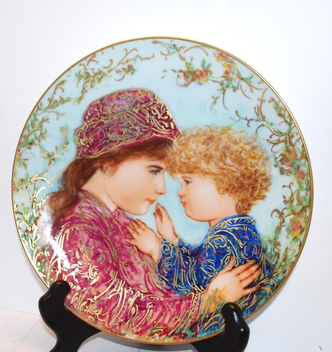 "Sarah & Tess" Edna Hibel 1988 Mother's Day Plate 18k Gold Rimmed