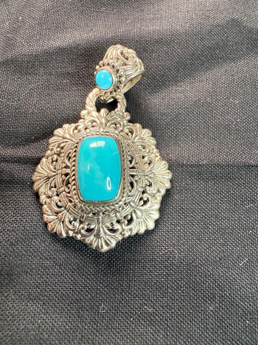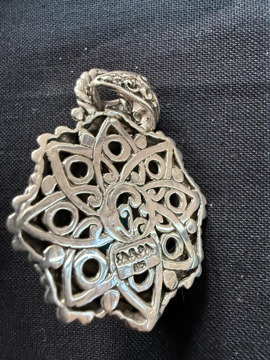 Sarda sterling silver floral pendant with carved unakite.