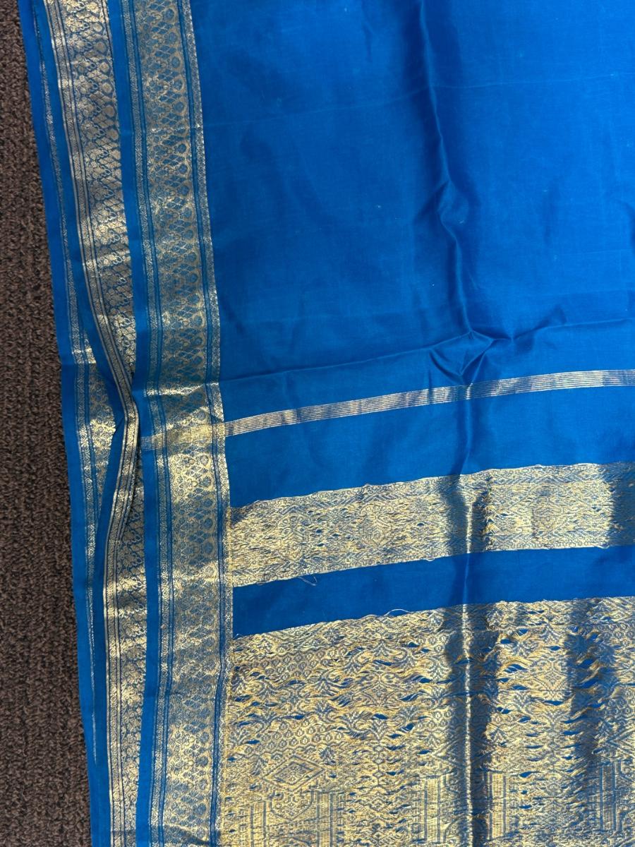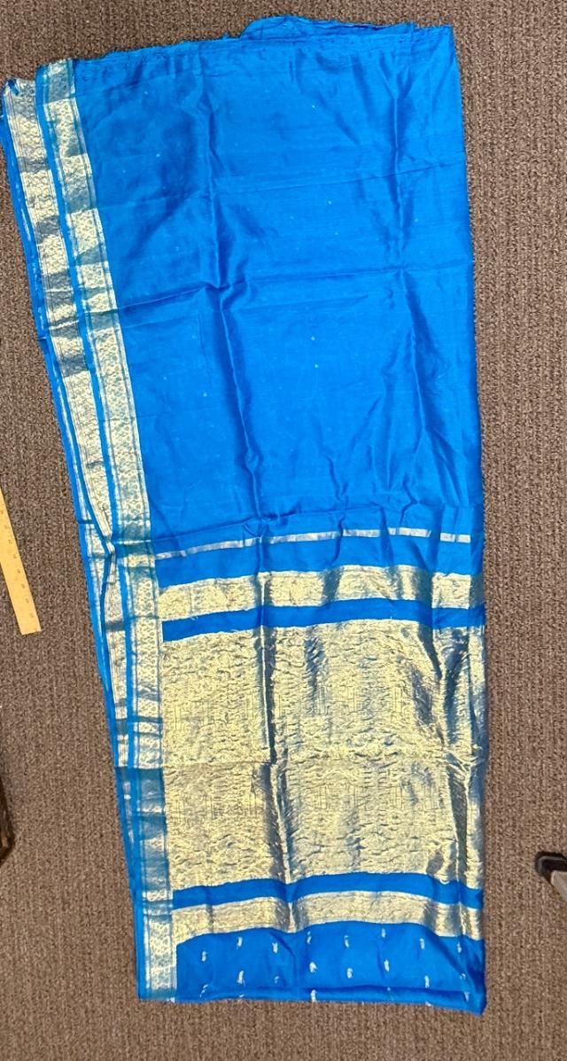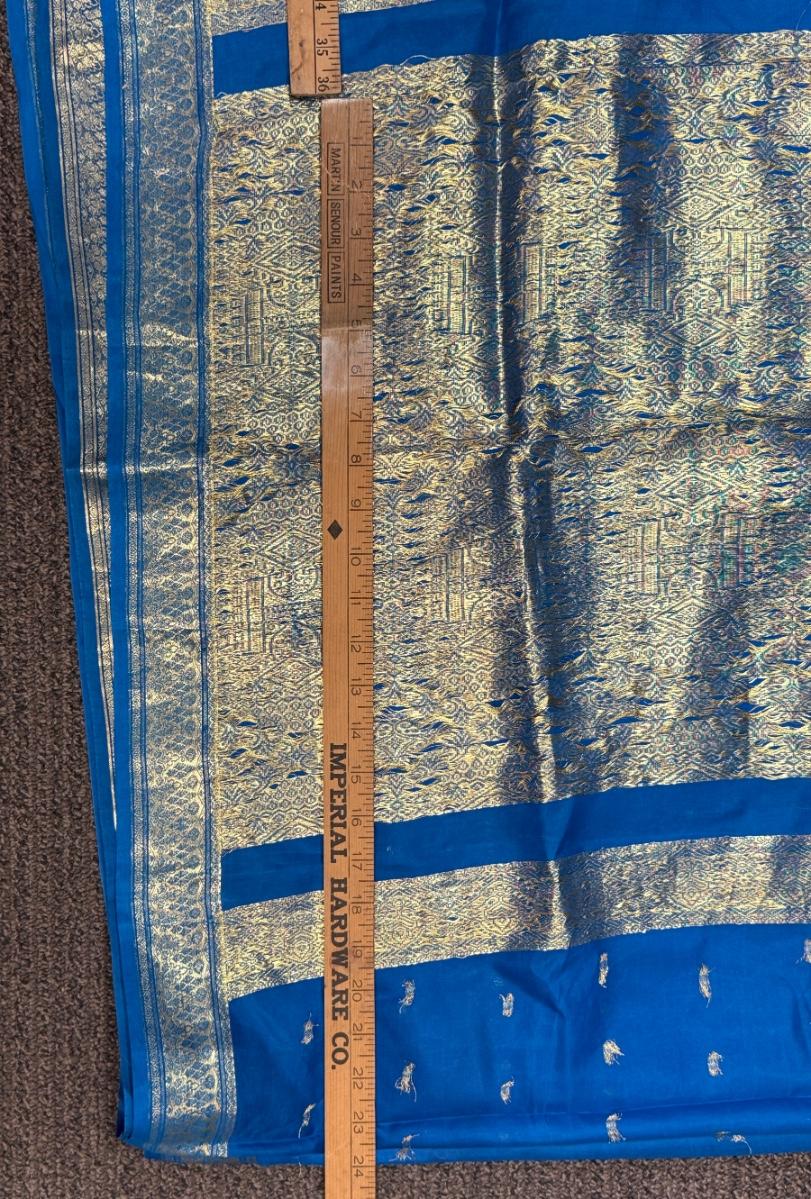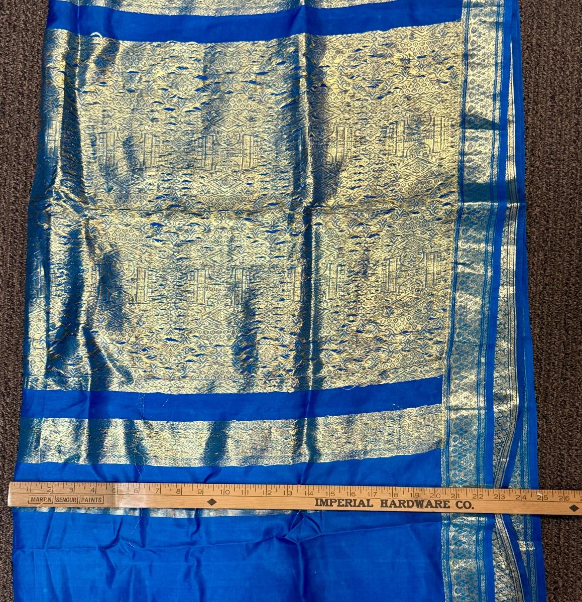 Sari Silk Material Royal Blue with Gold Embellishments 50 x 120 inches