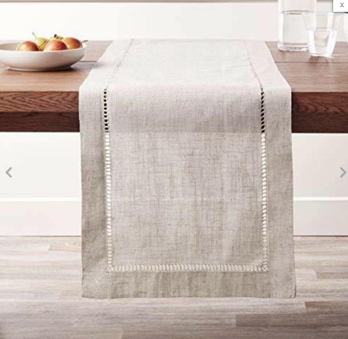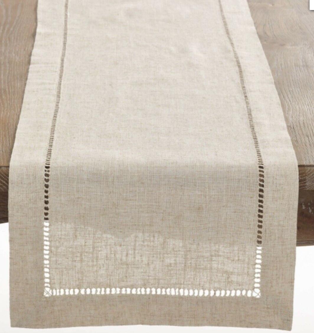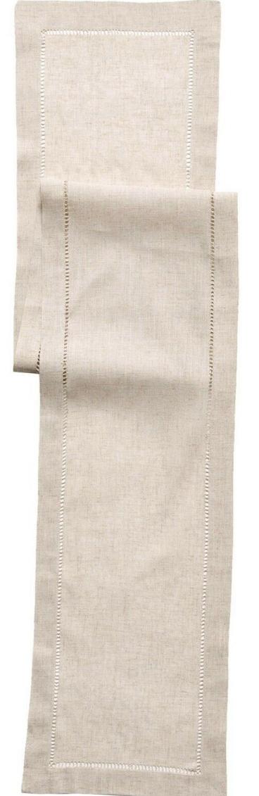 Saro Lifestyle Natural Hemstitched Linen Blend Table Runner 16" x 90"