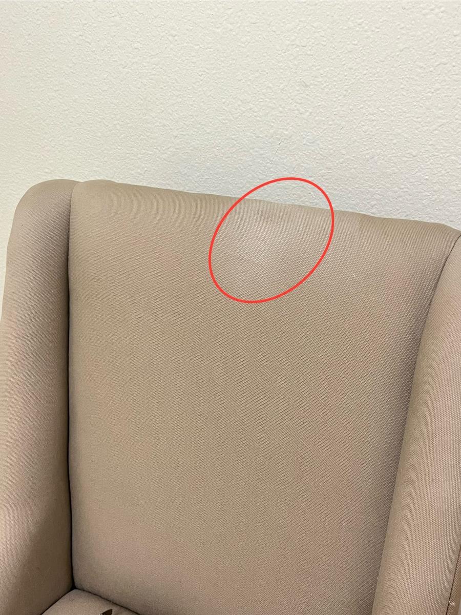 38” H x 23” W x 23” D ~ Top of chair material is showing signs of ware as seen in photo ~ Has been deodorized, disinfected & sanitized