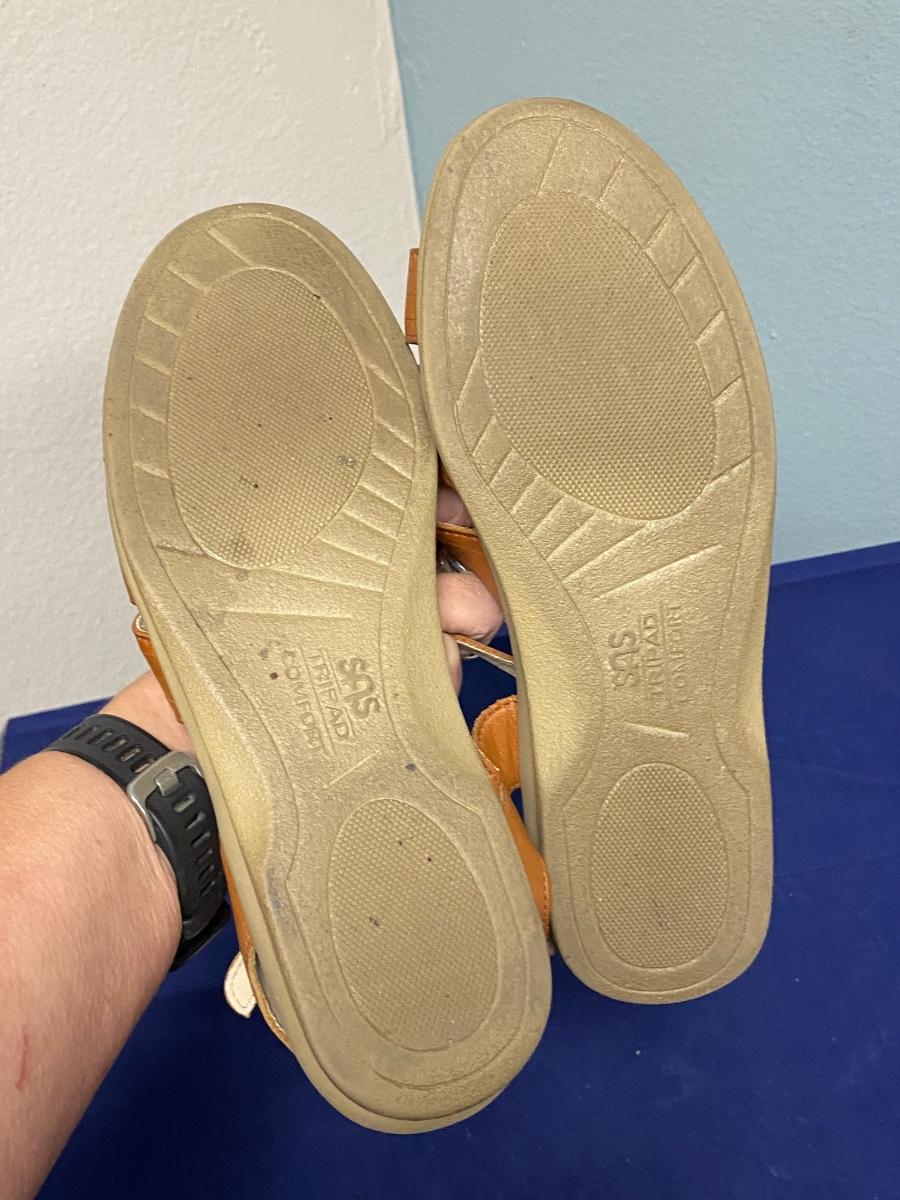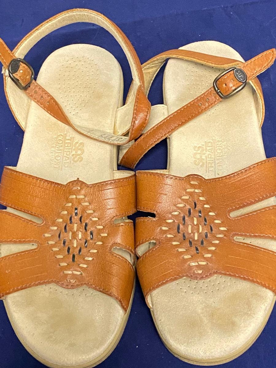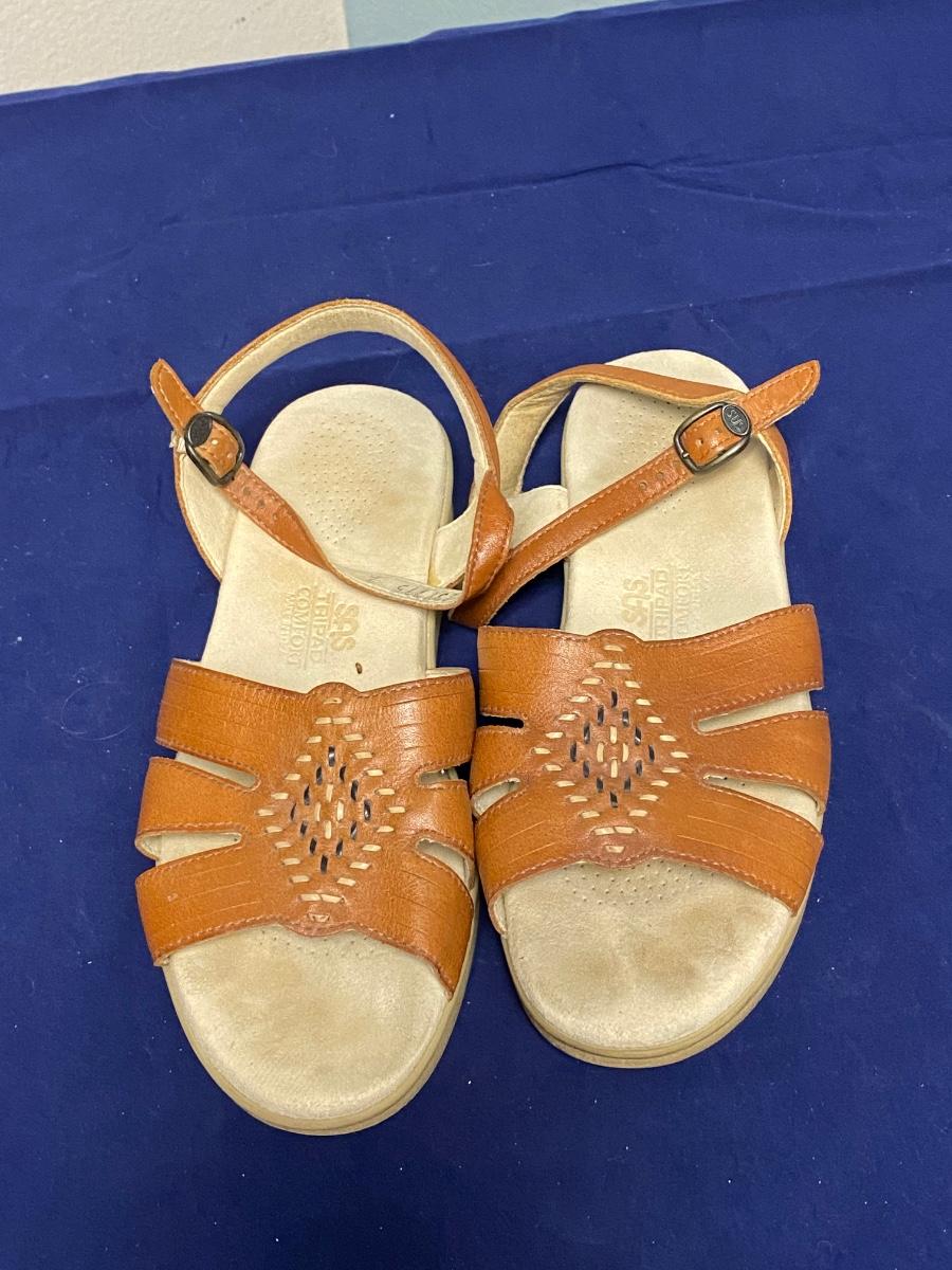 SAS Shoes Brown Leather Sandals with Ankle Buckles Size 9. In previously worn condition.