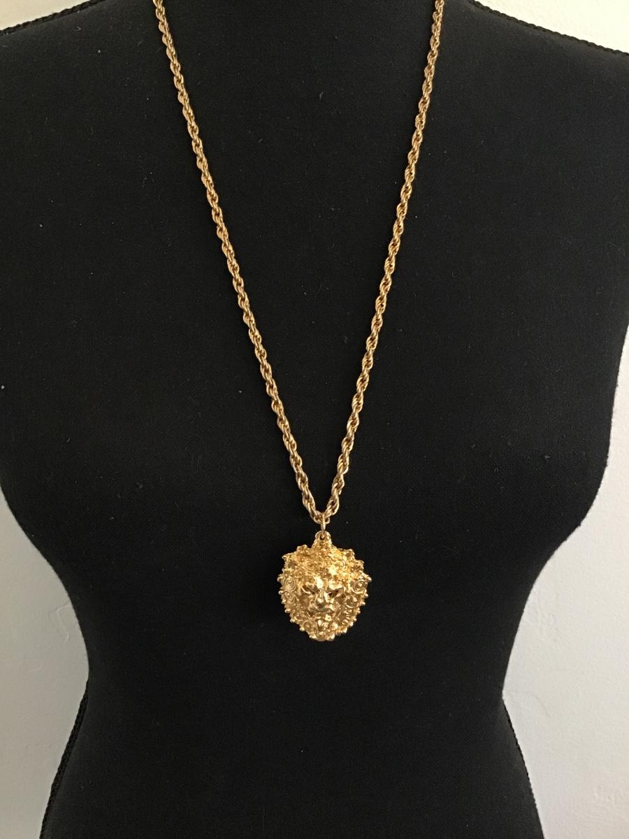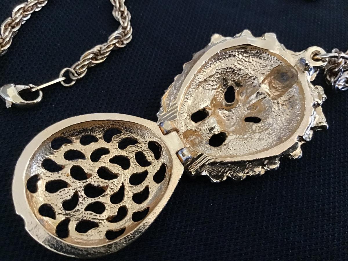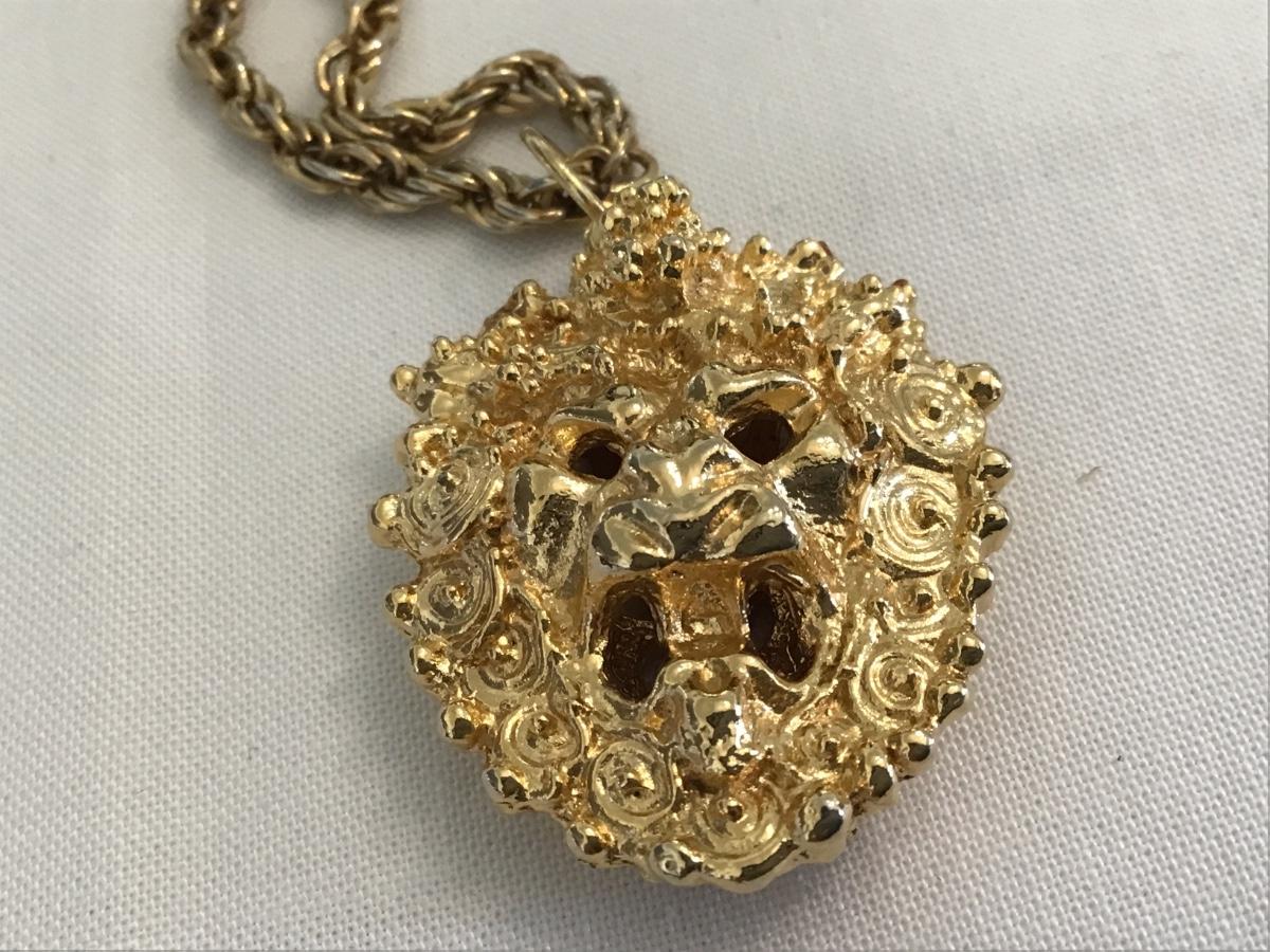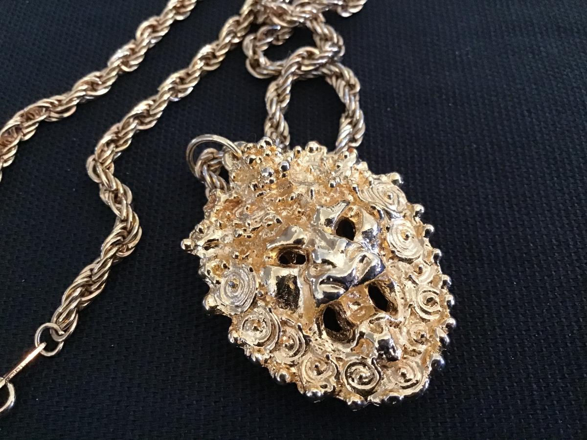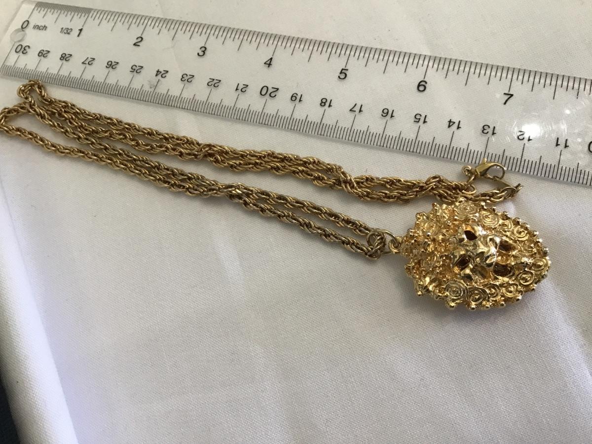 Sascha Brastoff Gold Lion Head Locket Pomander 24 Plated Vintage