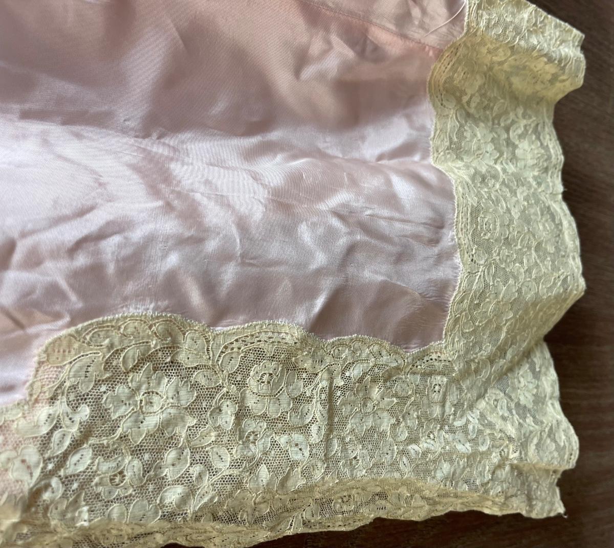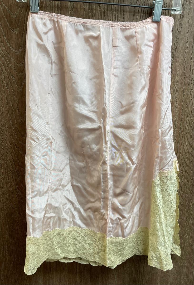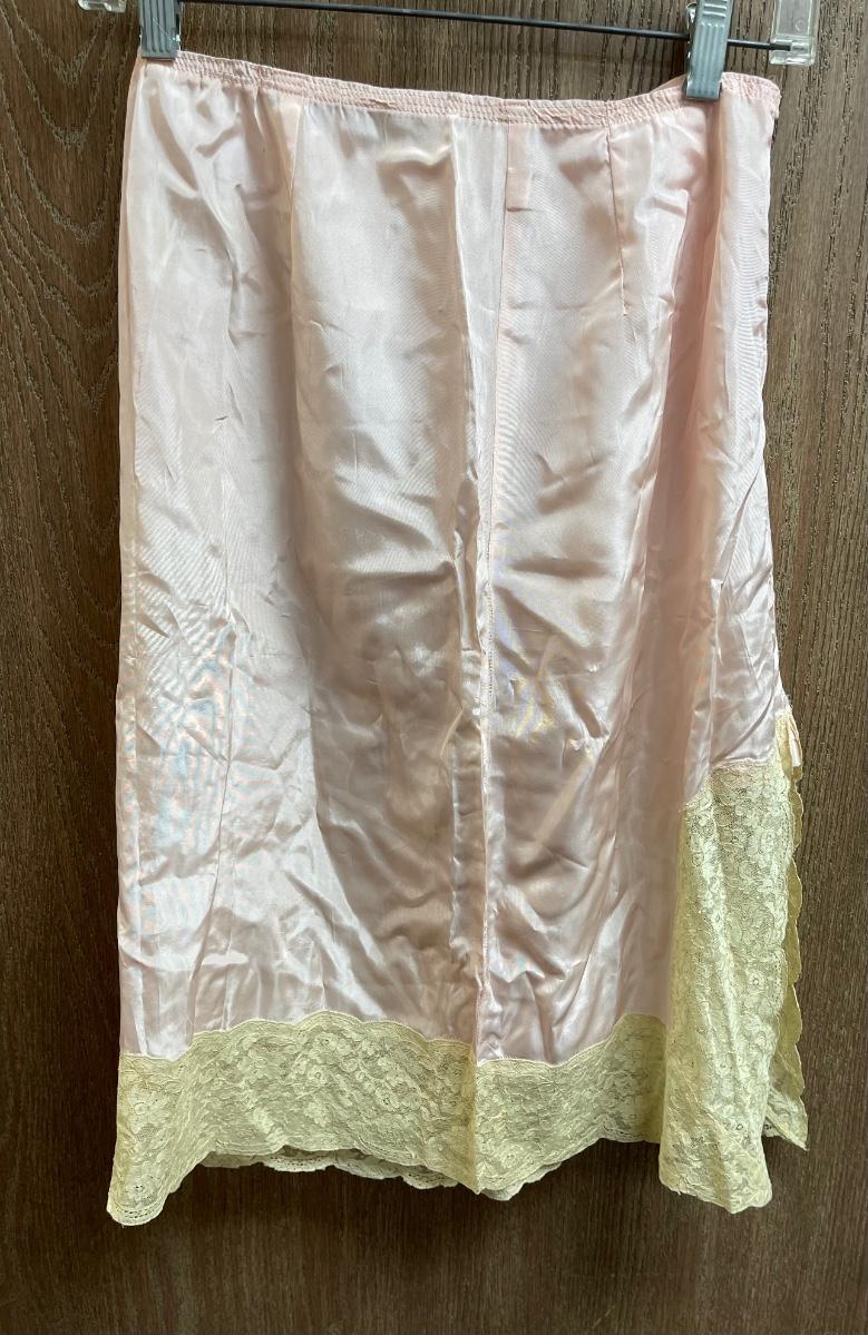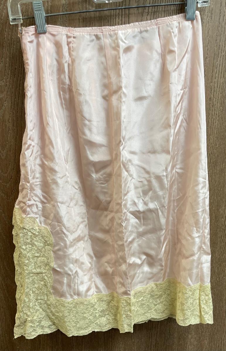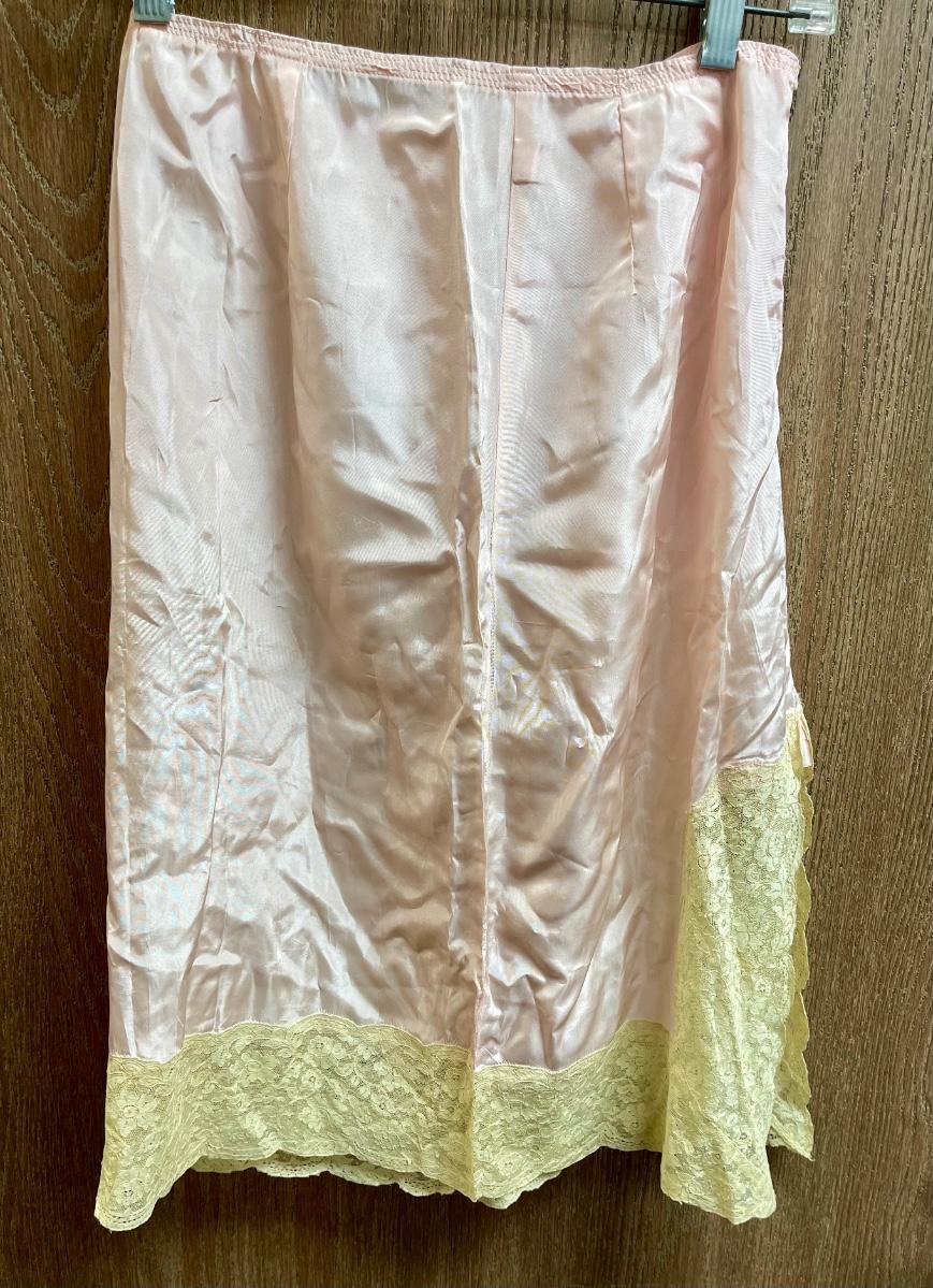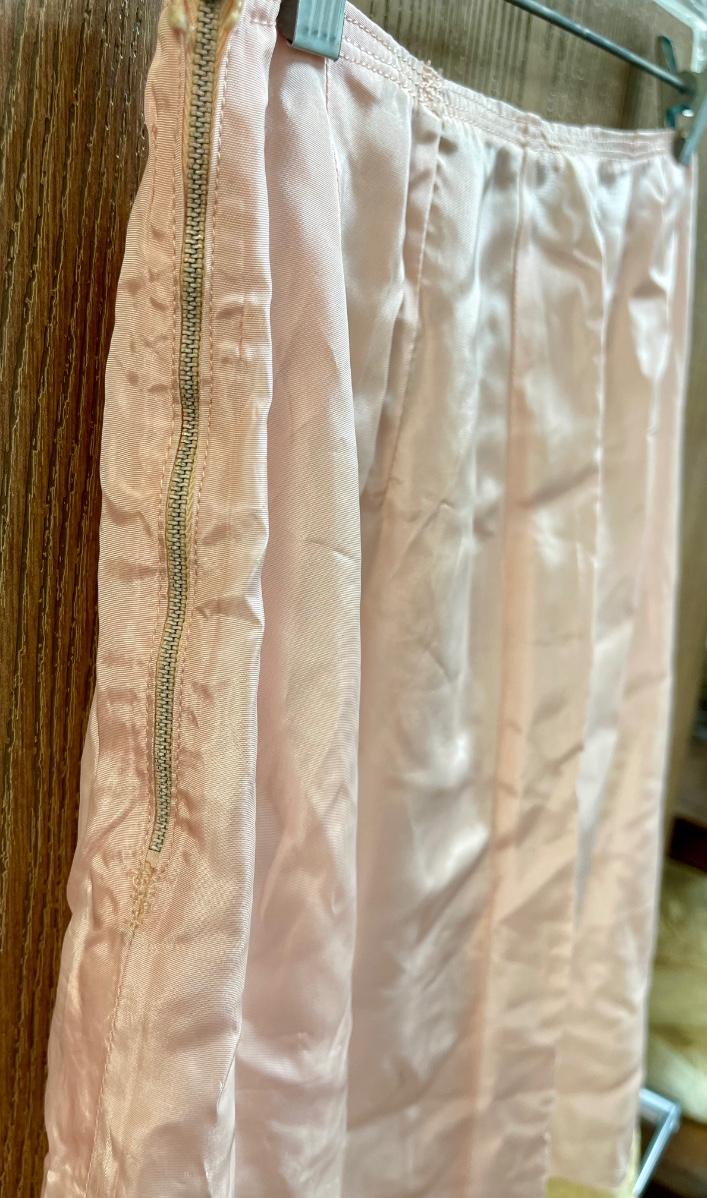 Vintage Slip, light pink with yellow lace, zips up, tailored