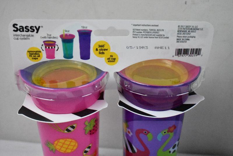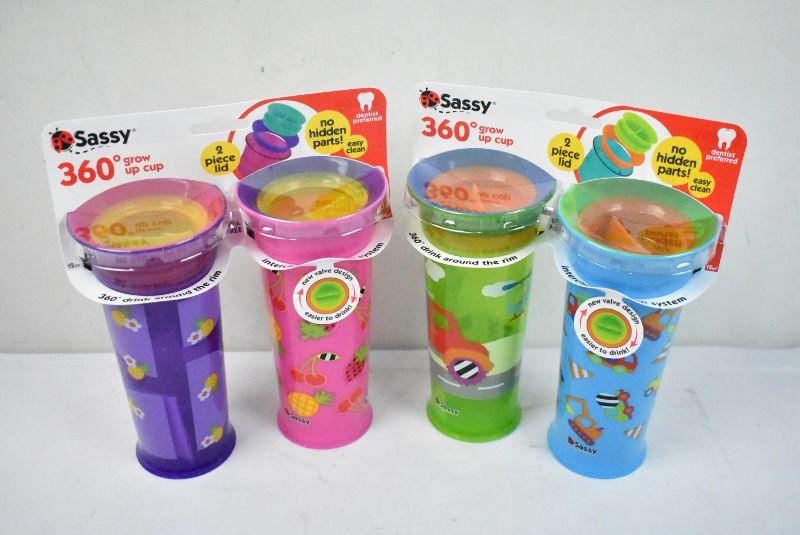 Sassy No Spill Spoutless Sippy Cup, Two 2-Packs 12 oz Each - New