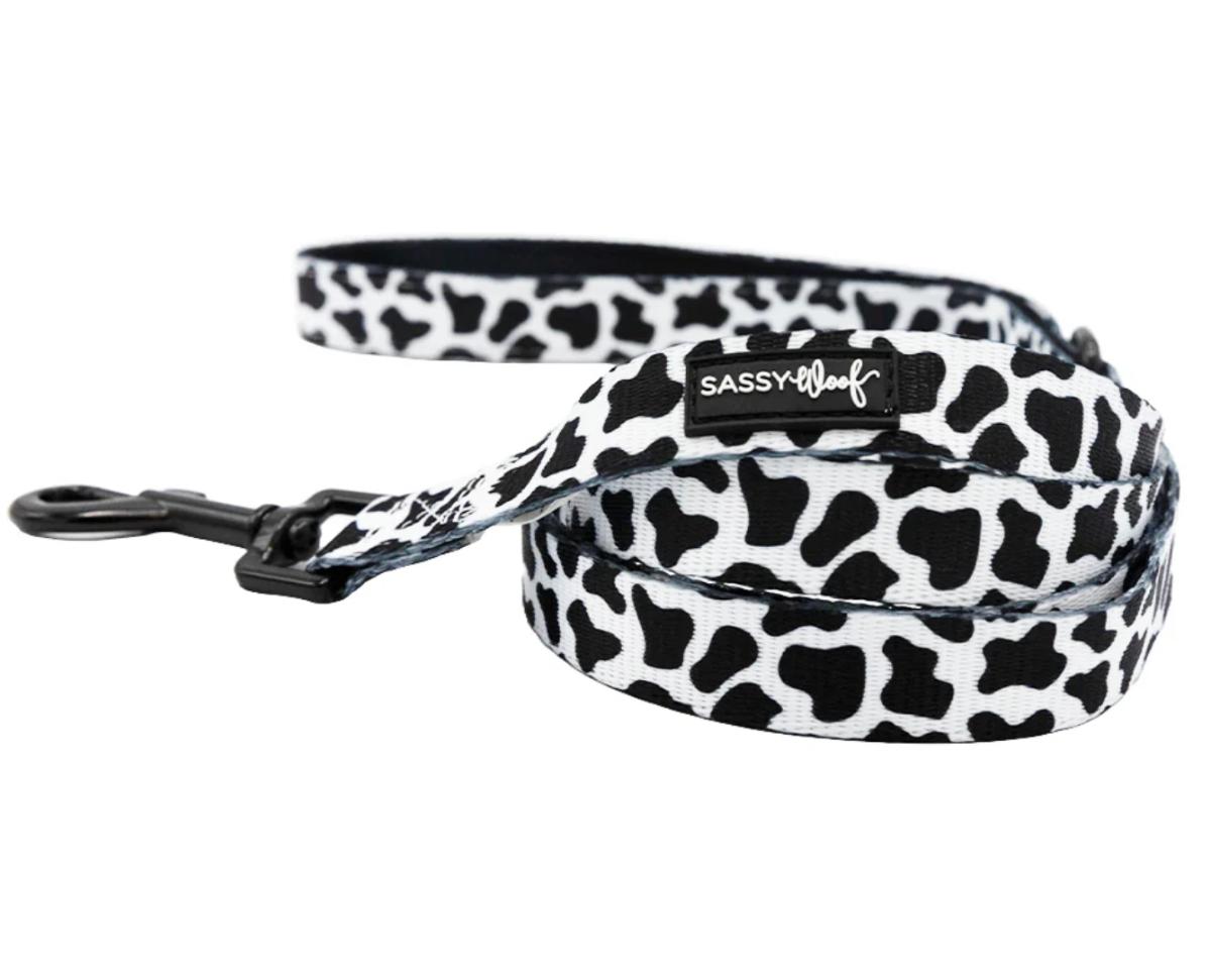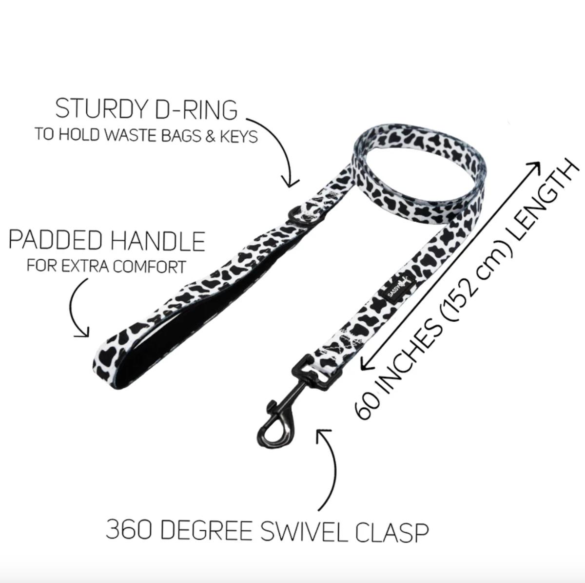 Sassy Woof 5' Dog Leash w/Sturdy D-Ring & 360 Degree Swivel Clasp in Whole Milk Cow Print