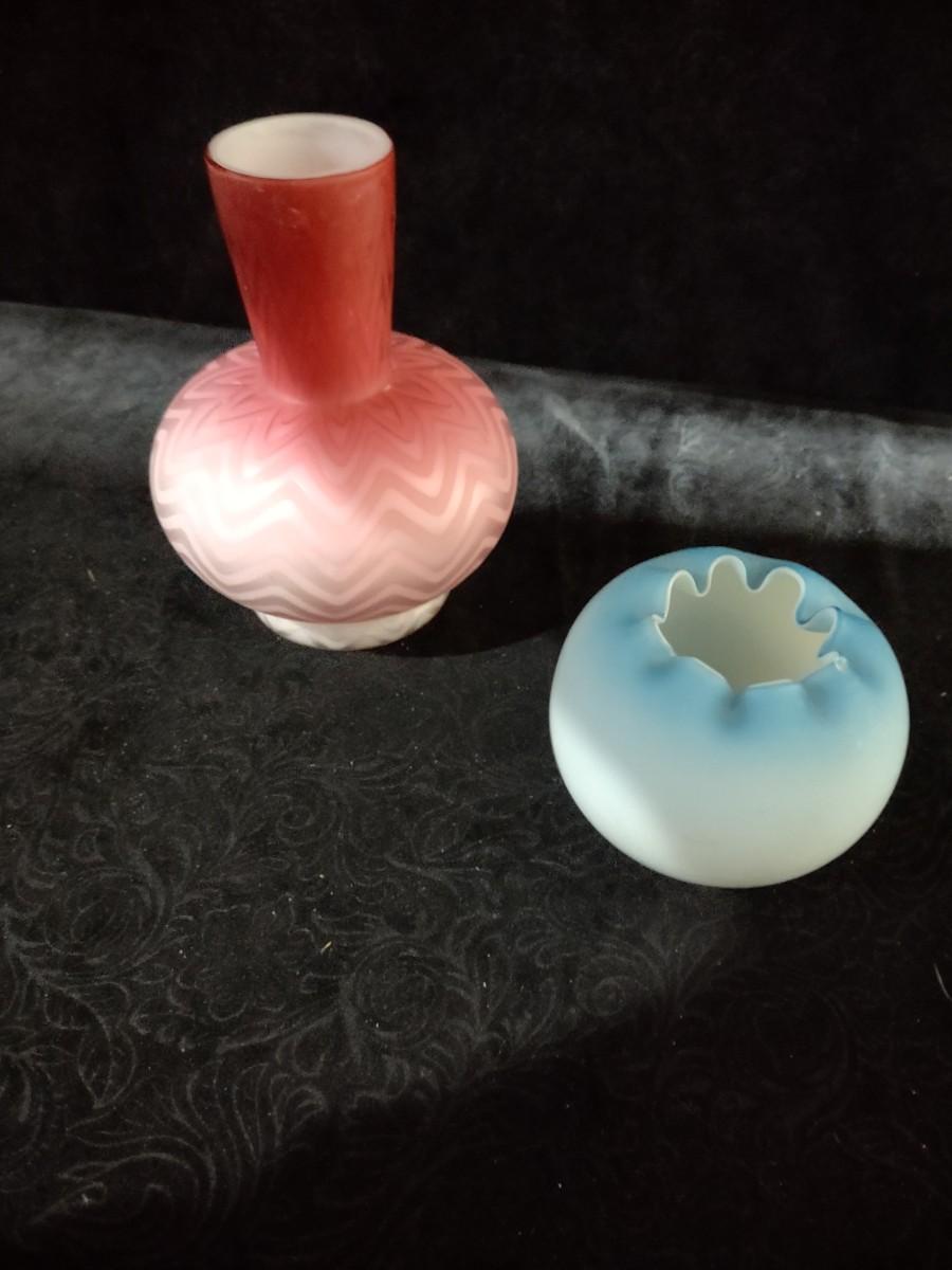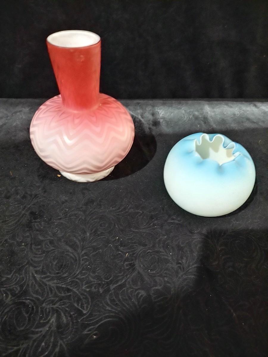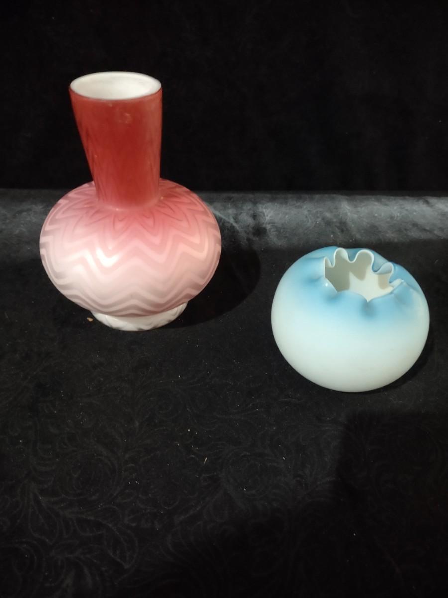 SATIN CASED ROSE BOWL & VICTORIAN SATIN GLASS VAASE