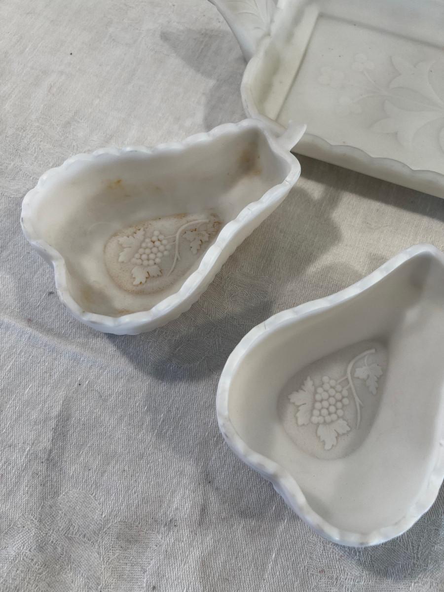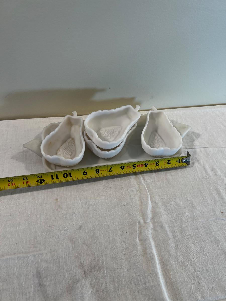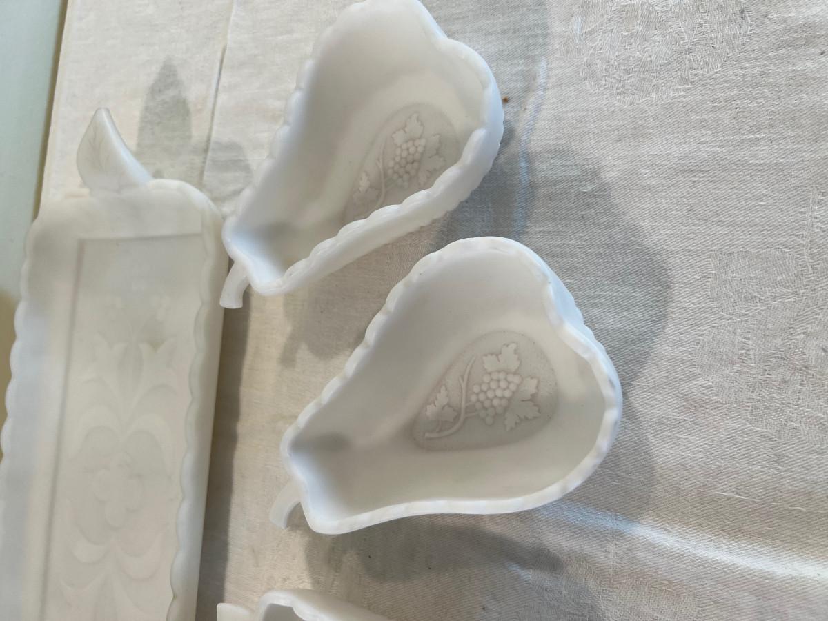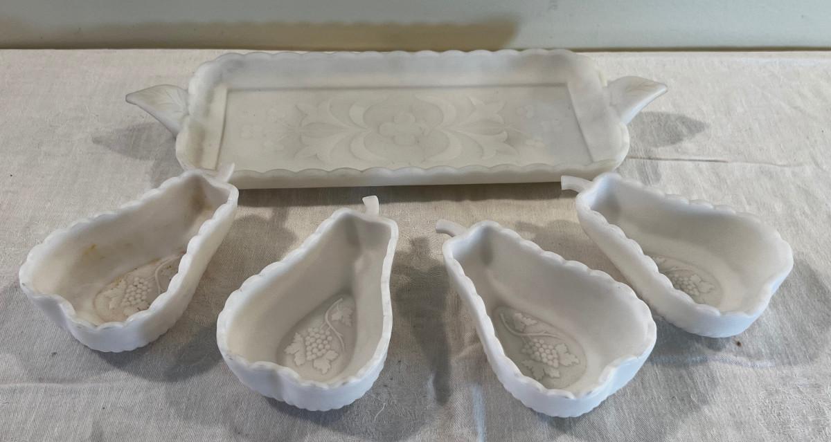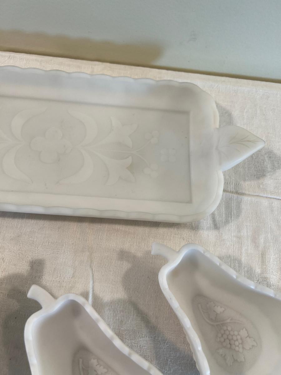 Tray is 14" Long. CUT! Milk Glass Look in Satin Finish.
