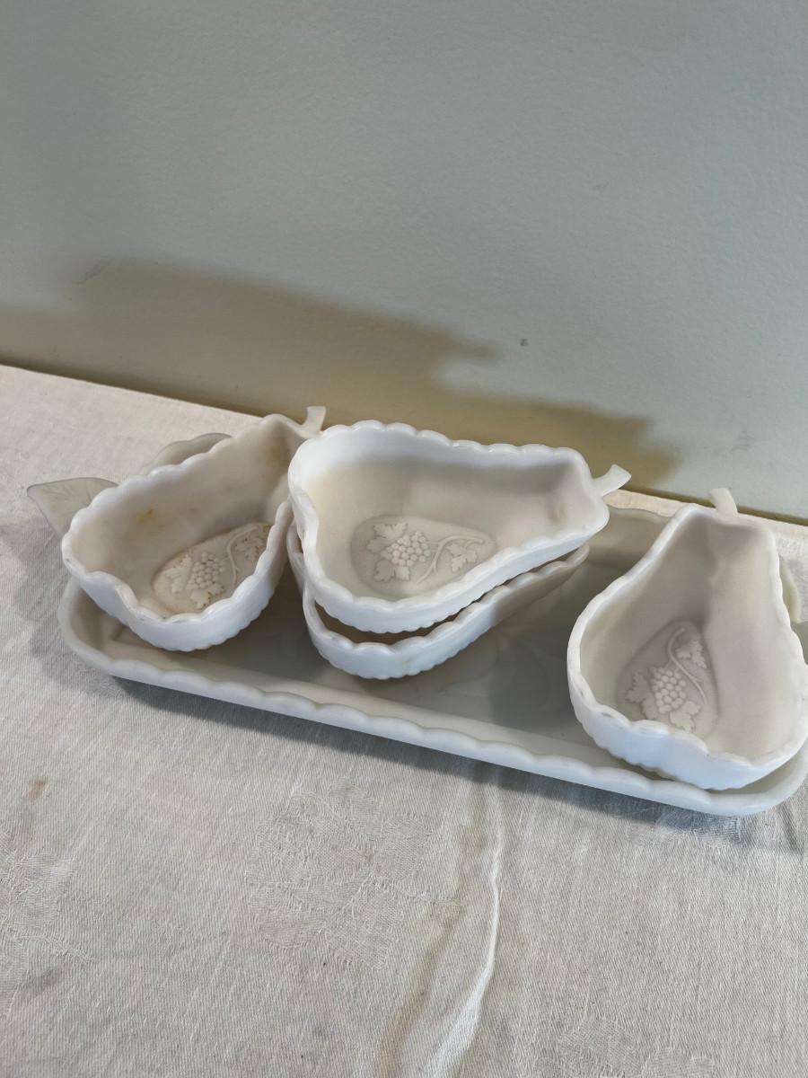 Satin Glass By Imperial Glass 4 Pear Shaped Bowls and 1 Serving Tray