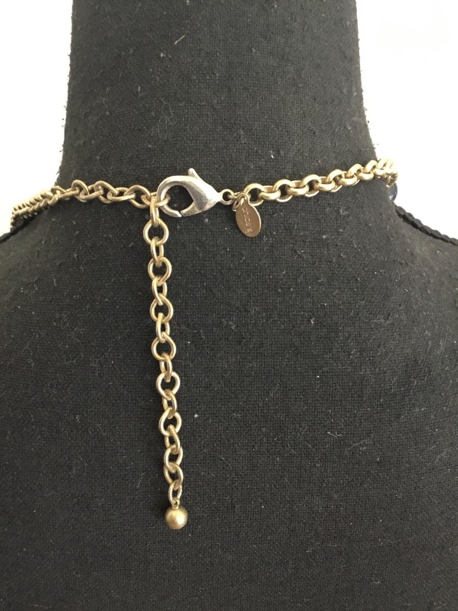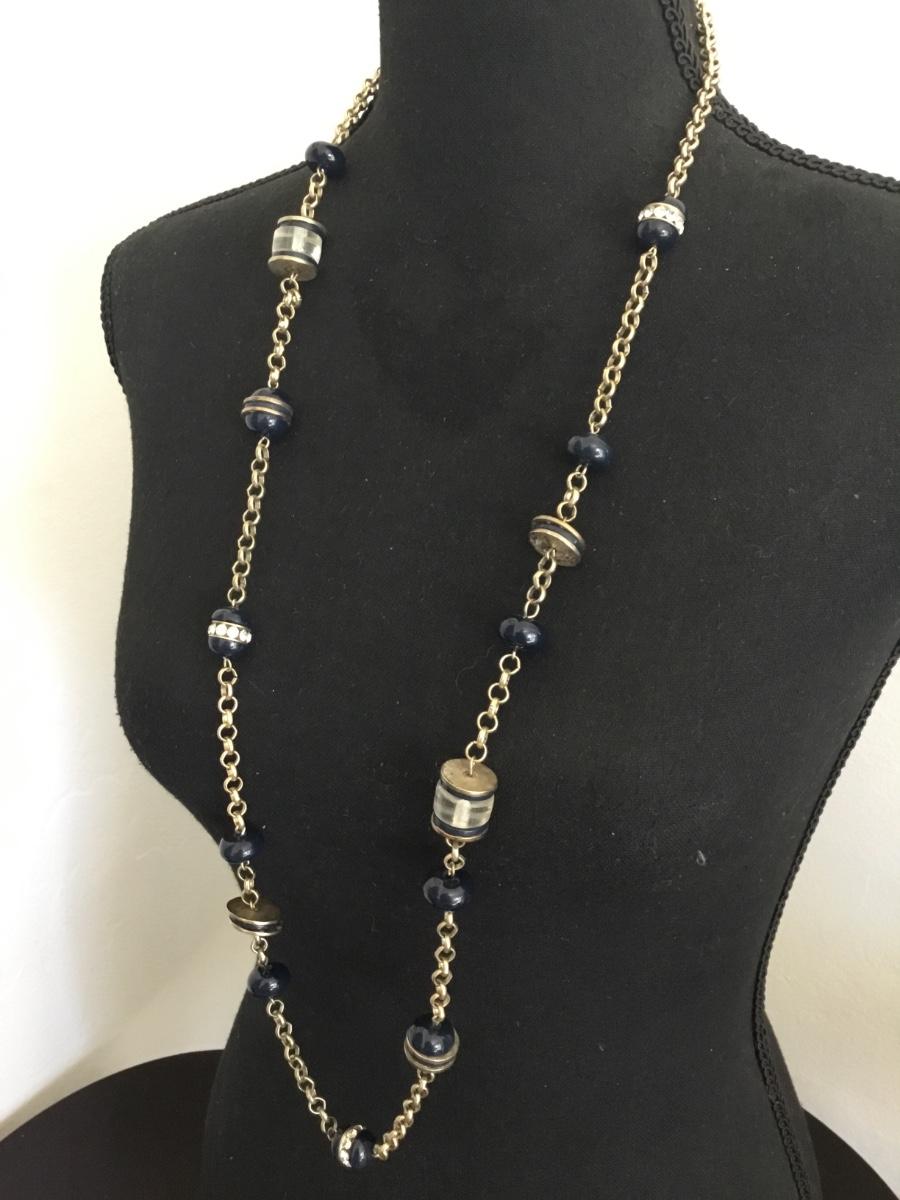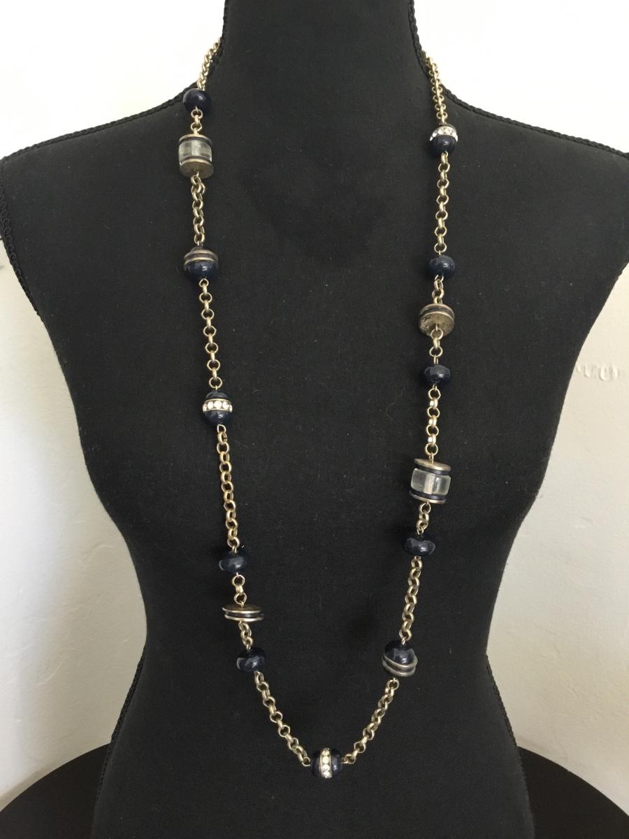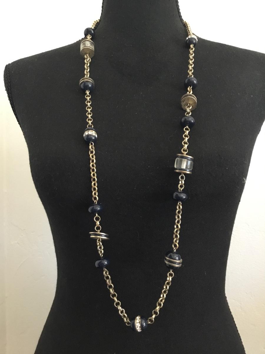Satin, gold, toned, dark navy blue bead Chicos necklace